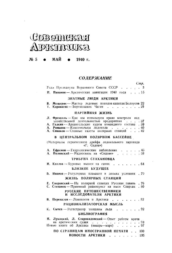 Журнал "Советская Арктика", ГУСМП, 1940, №5