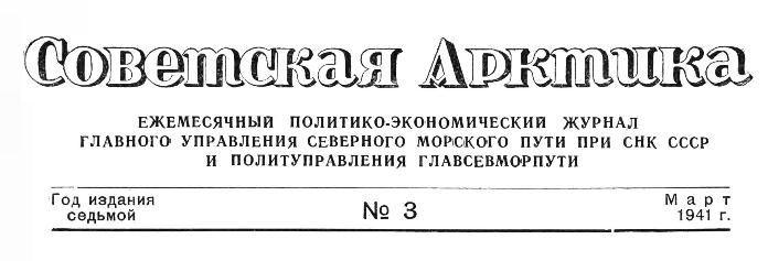 Журнал "Советская Арктика", ГУСМП, 1941, №3
