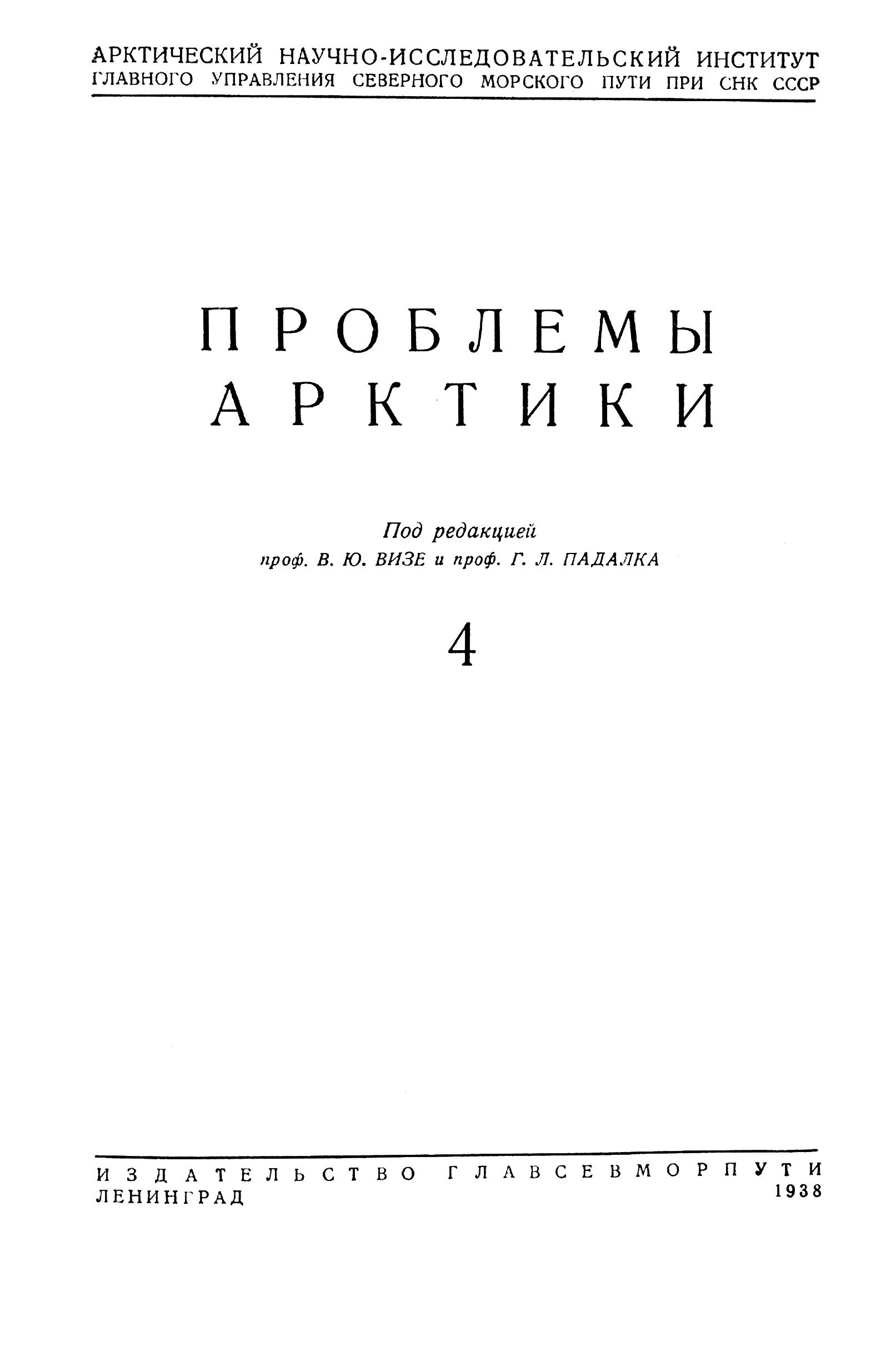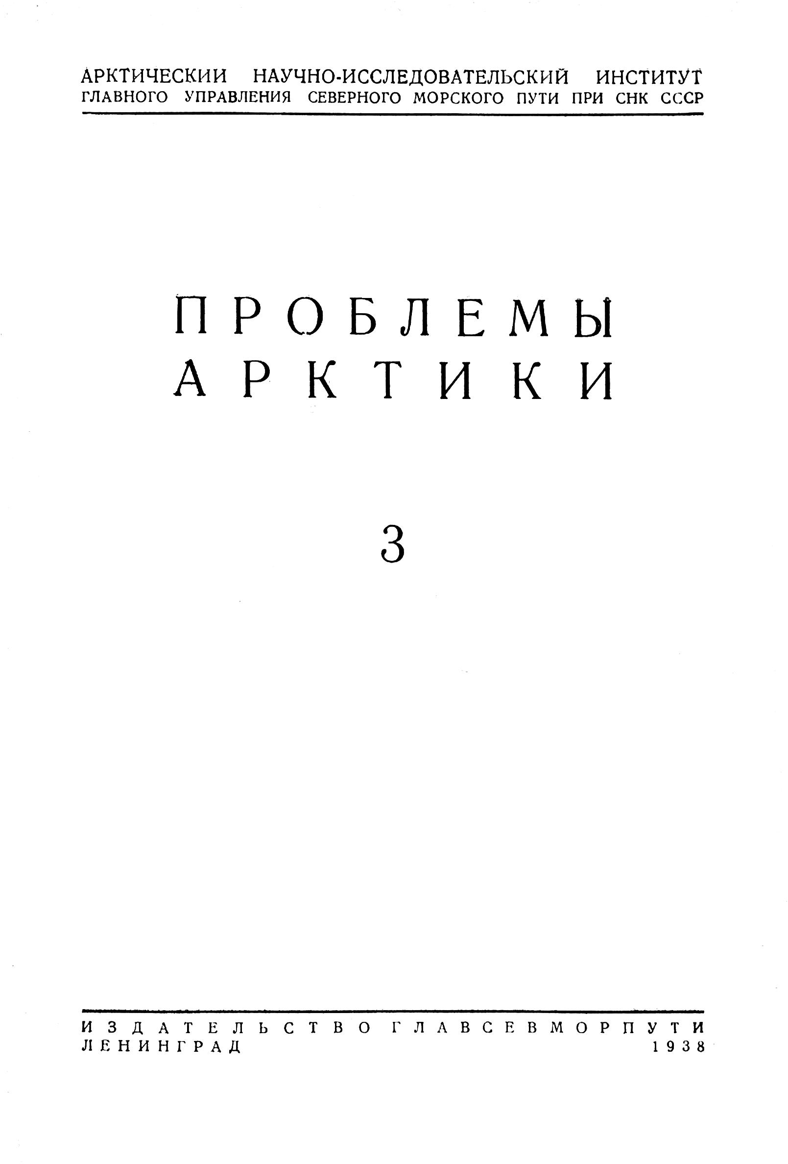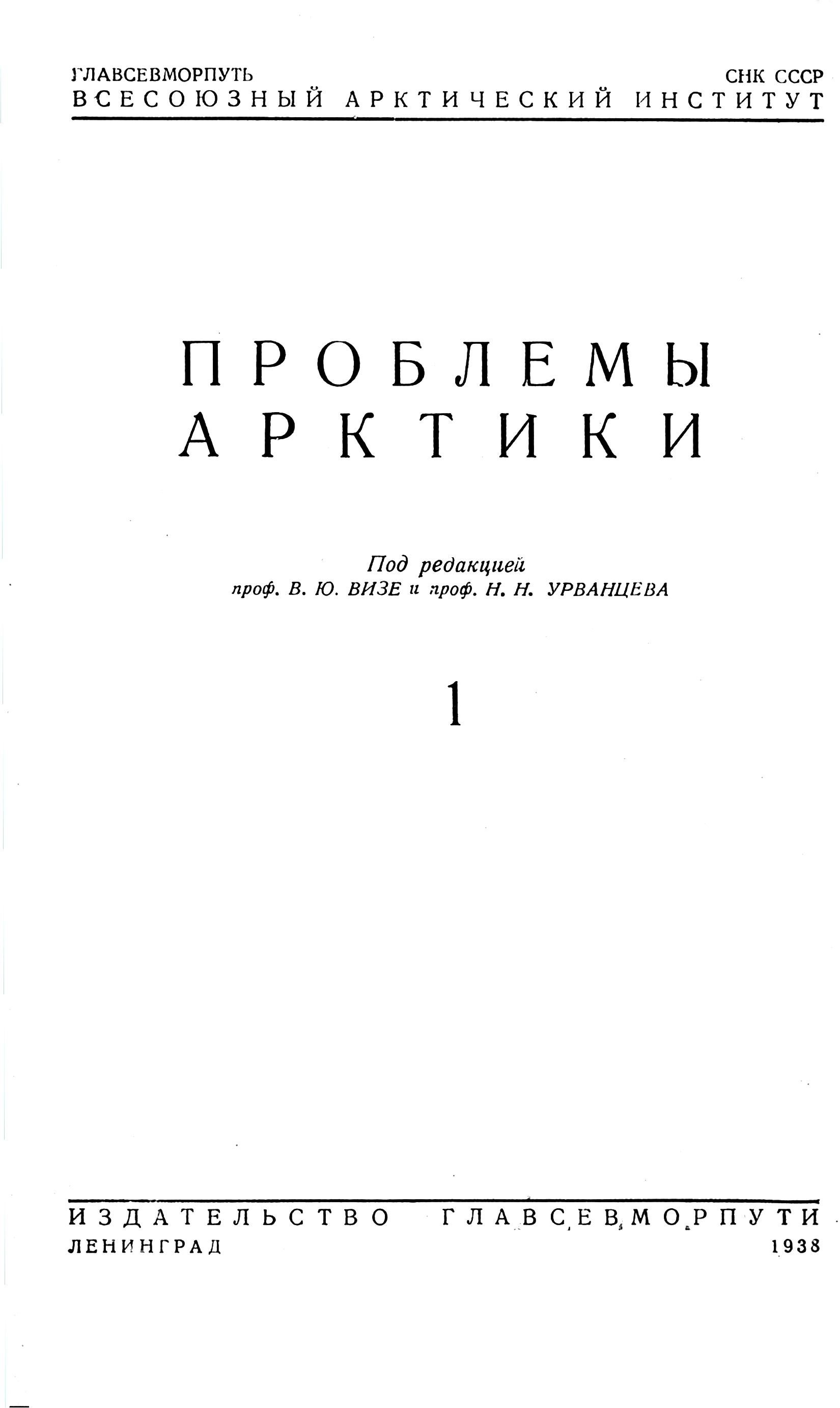 ПРОБЛЕМЫ АРКТИКИ №1. Изд-во Главсевморпути. Ленинград 1938