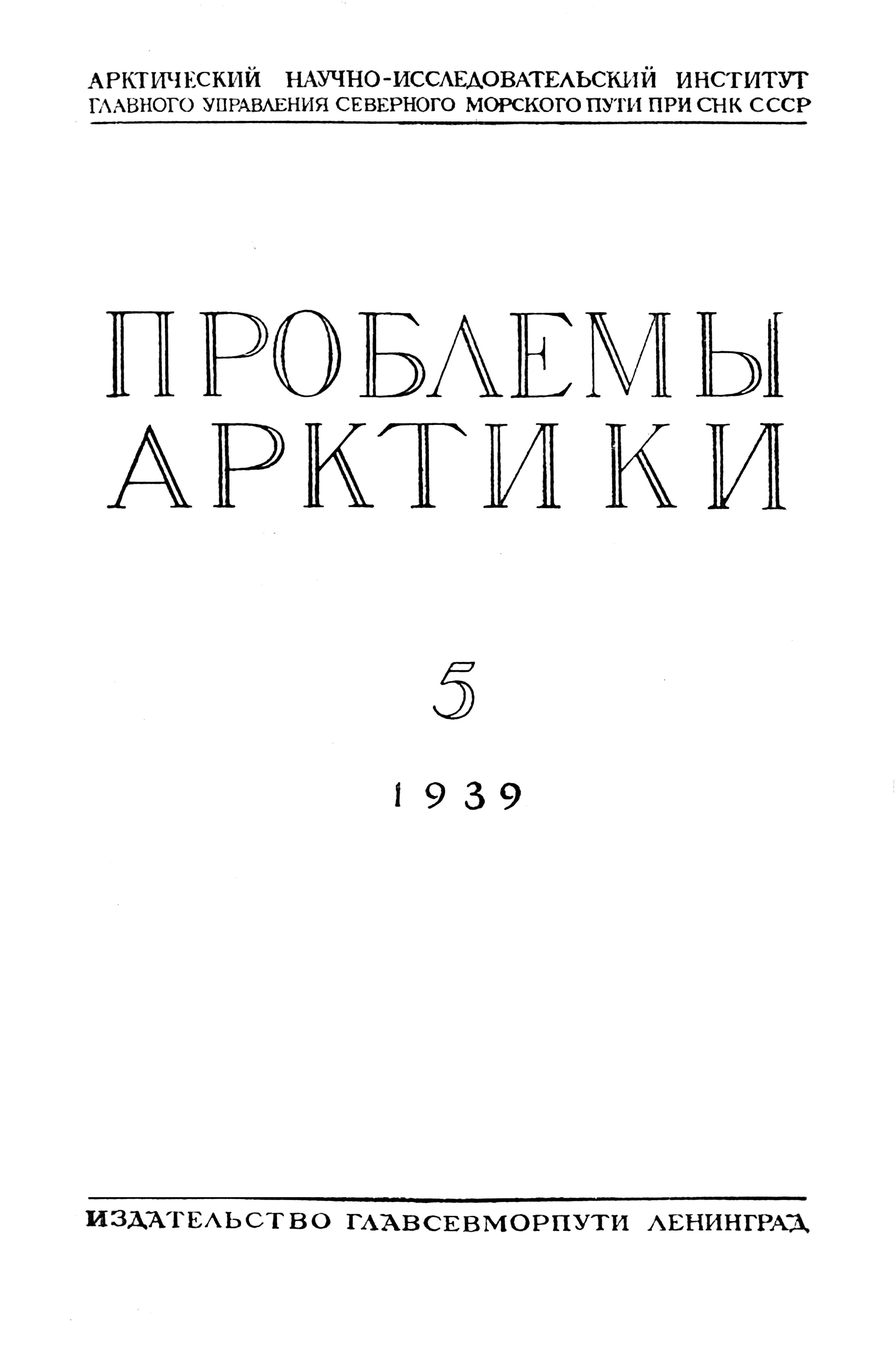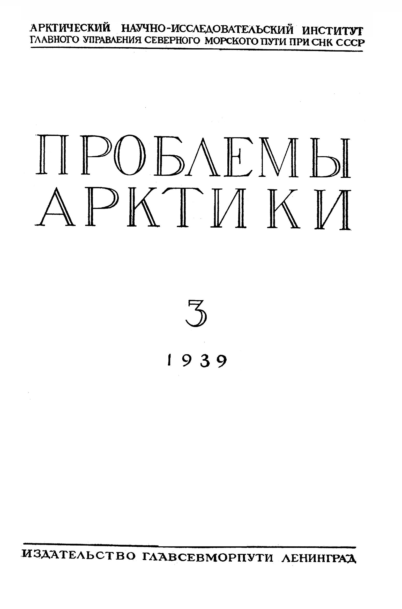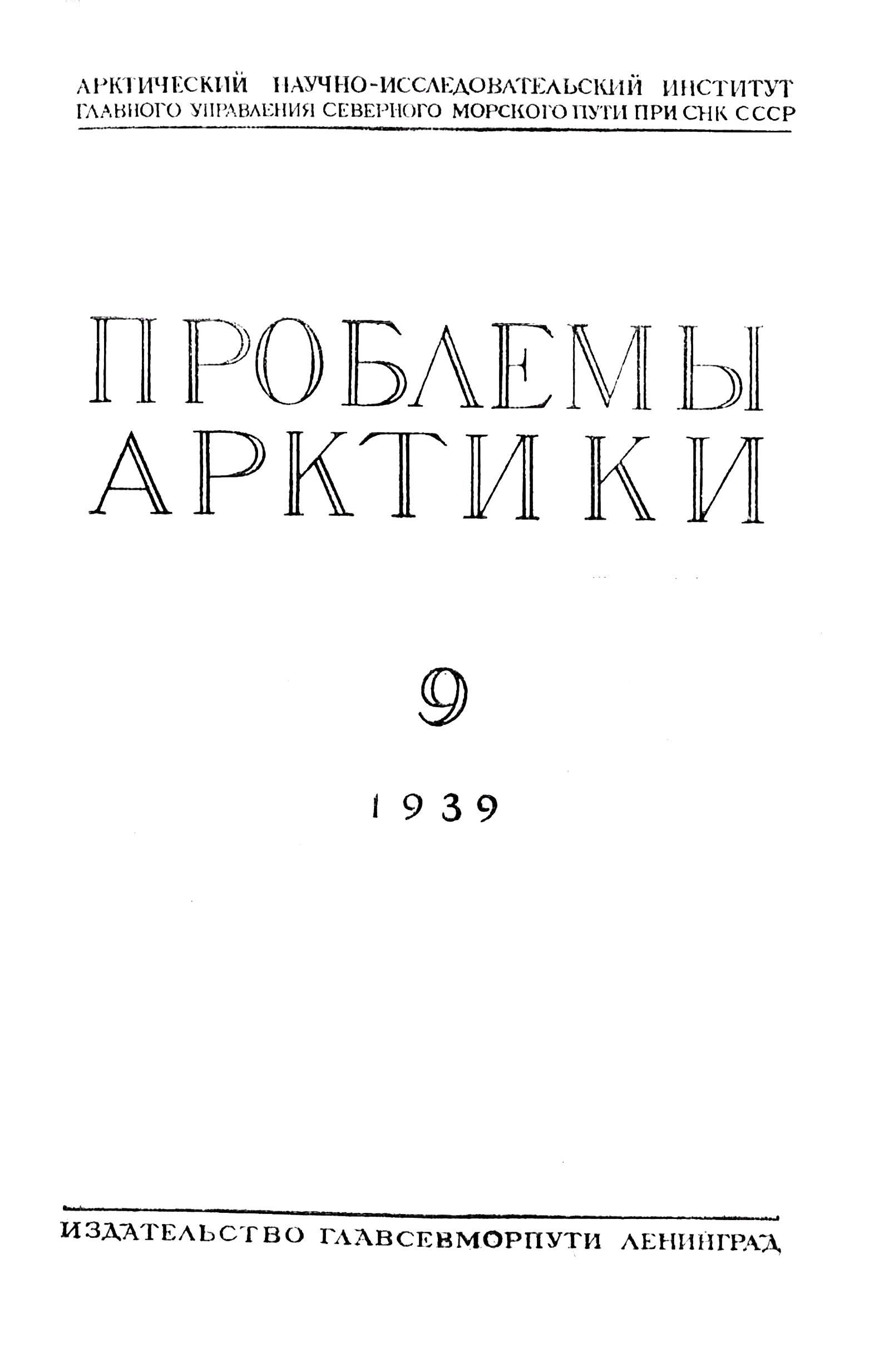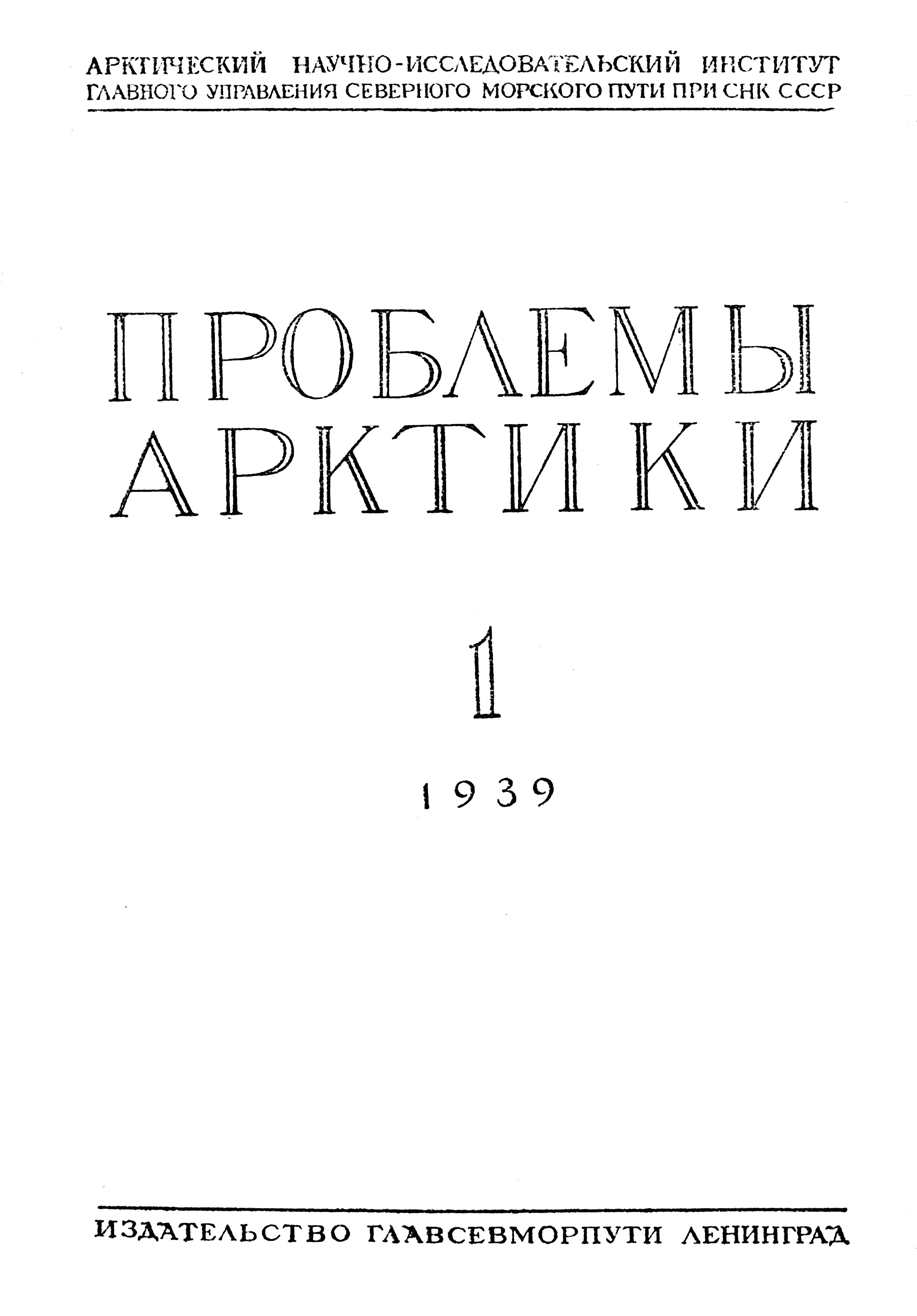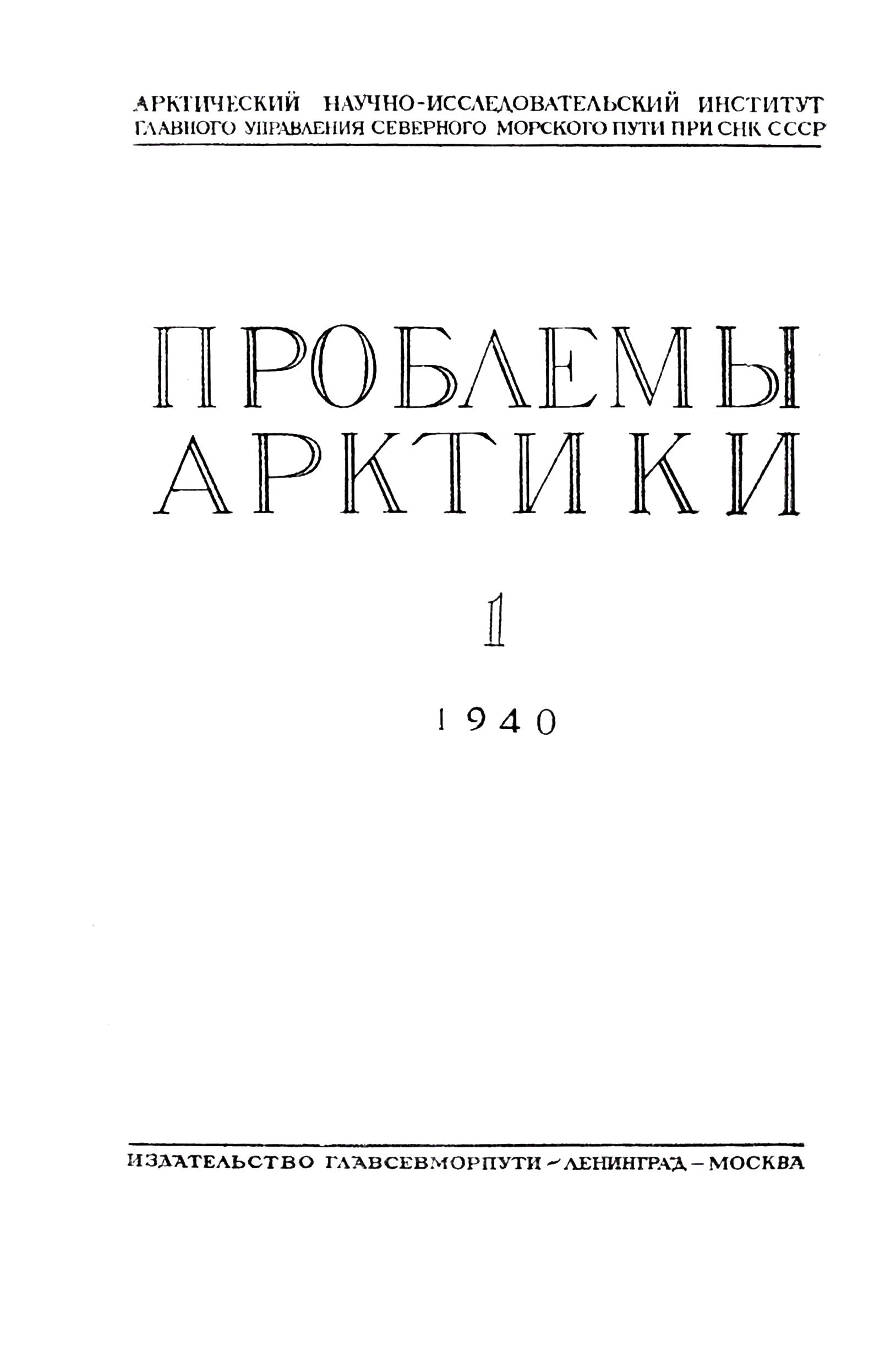ПРОБЛЕМЫ АРКТИКИ №1. Изд-во Главсевморпути. Ленинград 1940