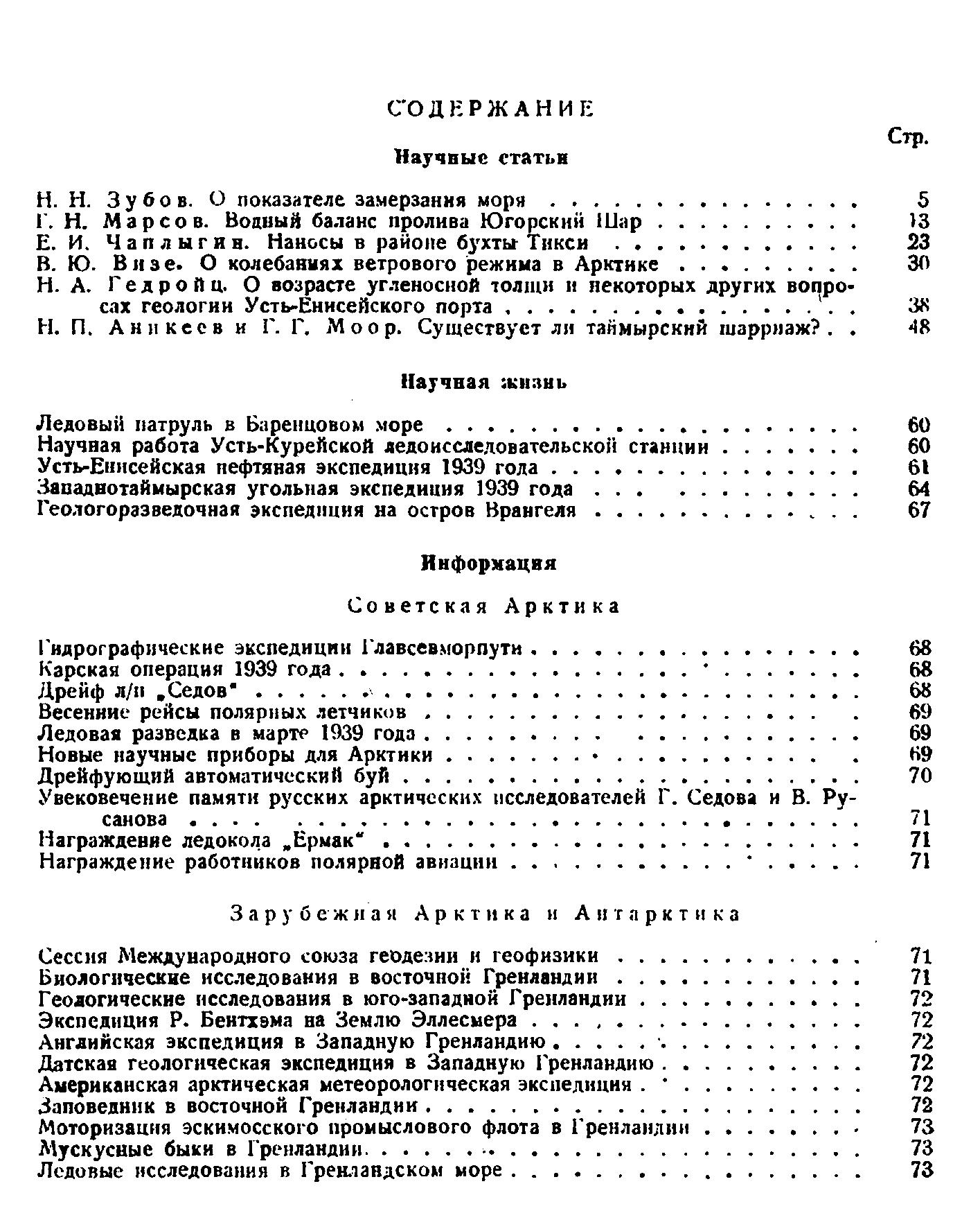 B. Ю. Визе. Третья высокоширотная экспедиция на "Садко" 1937 года ... 73