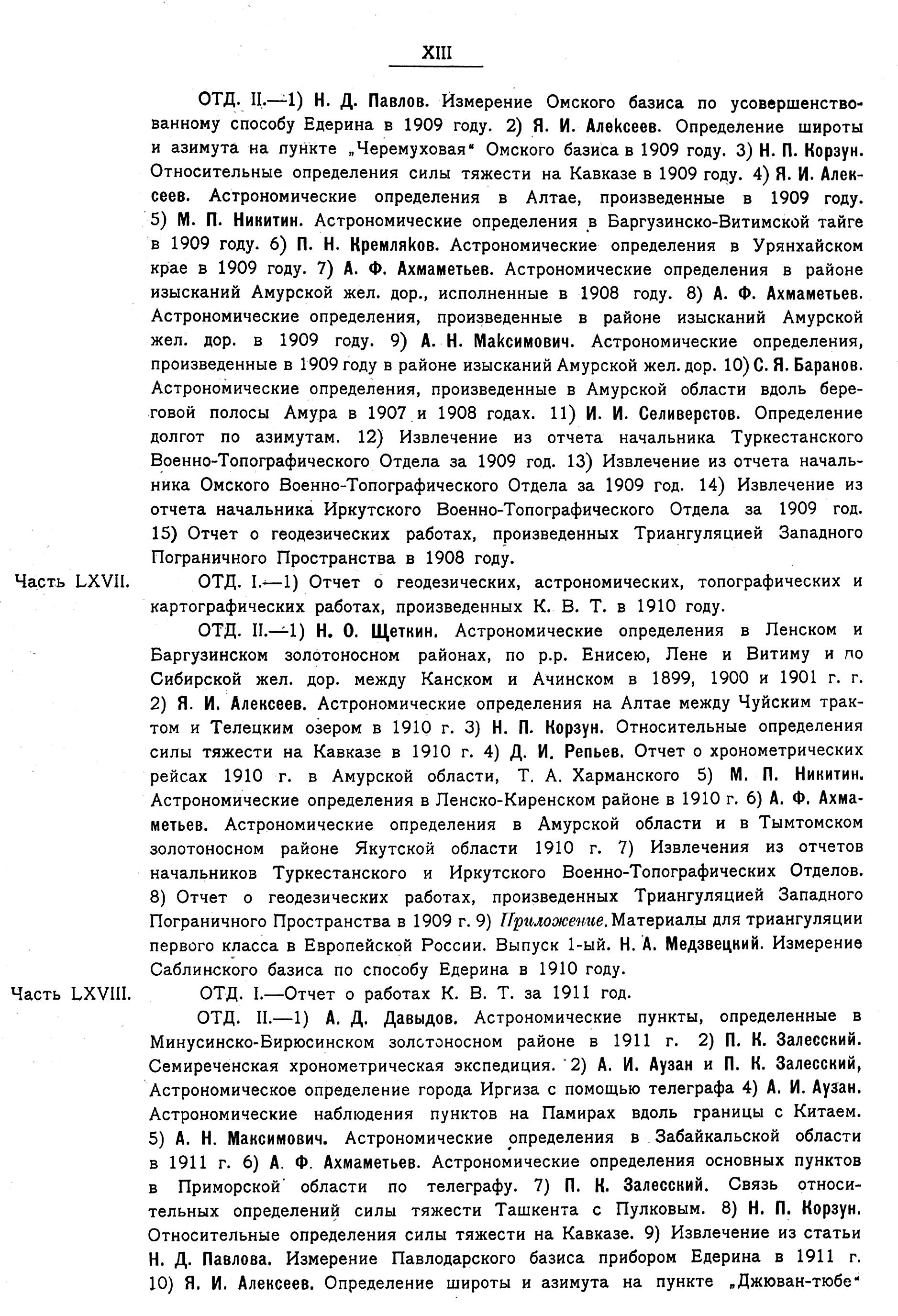 2) О геодезических работах, произведенных в Оренбургском крае с 1820 по 1856 год. 3) Окончательные выводы из астрономических наблюдений, произведенных астрономом Забайкальской экспедиции Шварцем с 1849 по 1853 г.