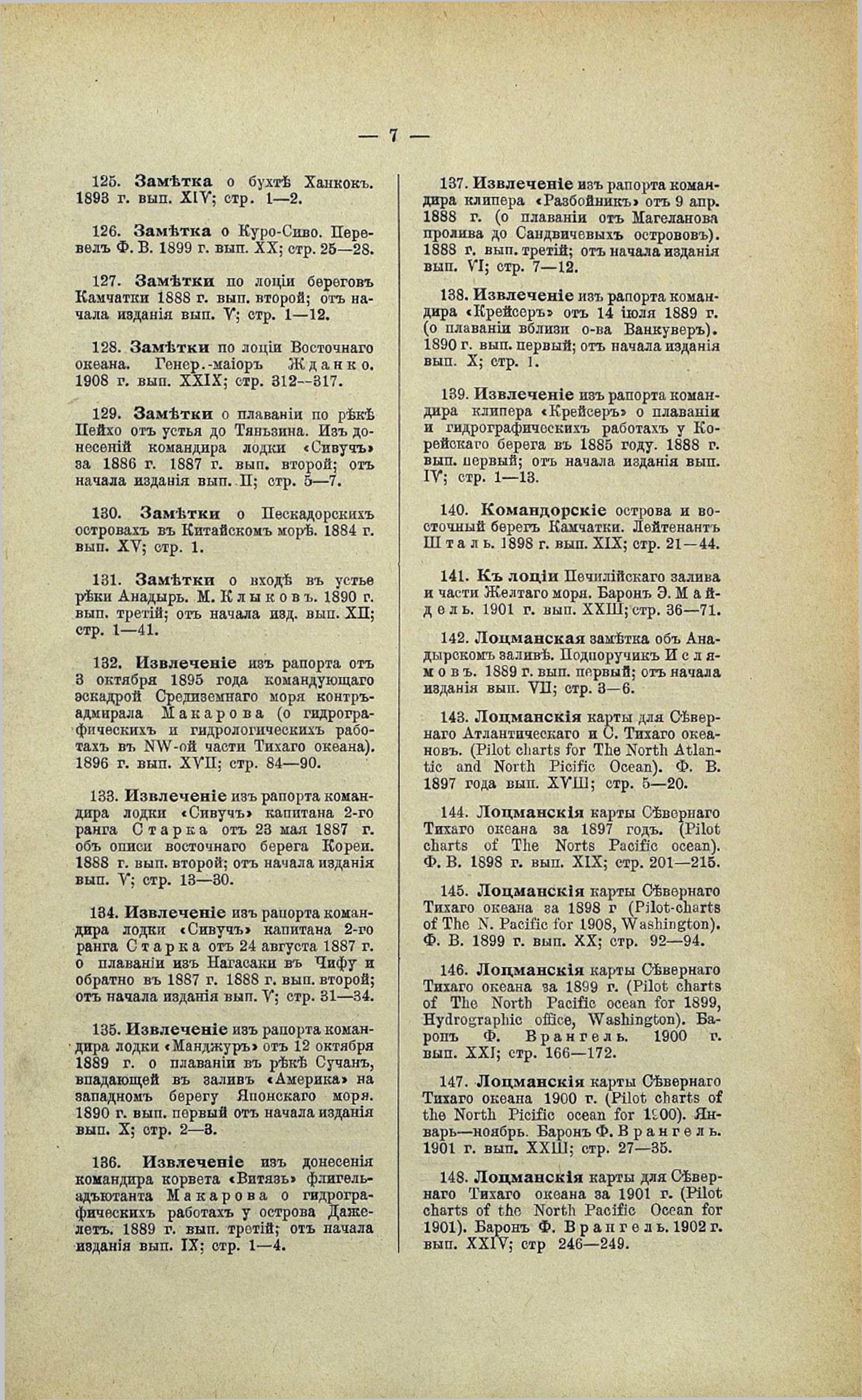 15. Заметки по лоции Мурманского берега. 1888 г. вып. первый; от начала издания вып. ІV; стр. 20—24.