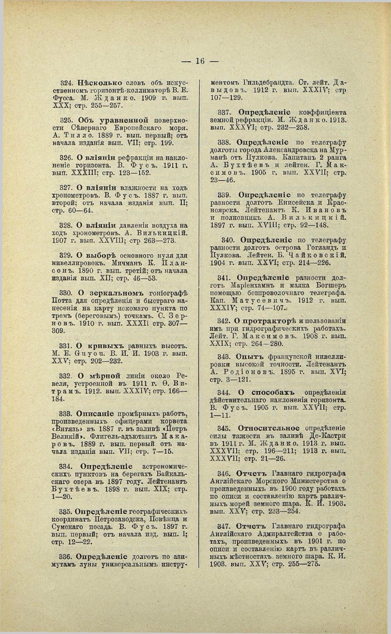 16. Извлечение из отчета лейтенанта Жданко о гидрографических работах в Белом море в 1891 г. Мичман Плансон. 1892 г. вып. первый; от начала издания вып. ХIIІ; стр. 10—16.