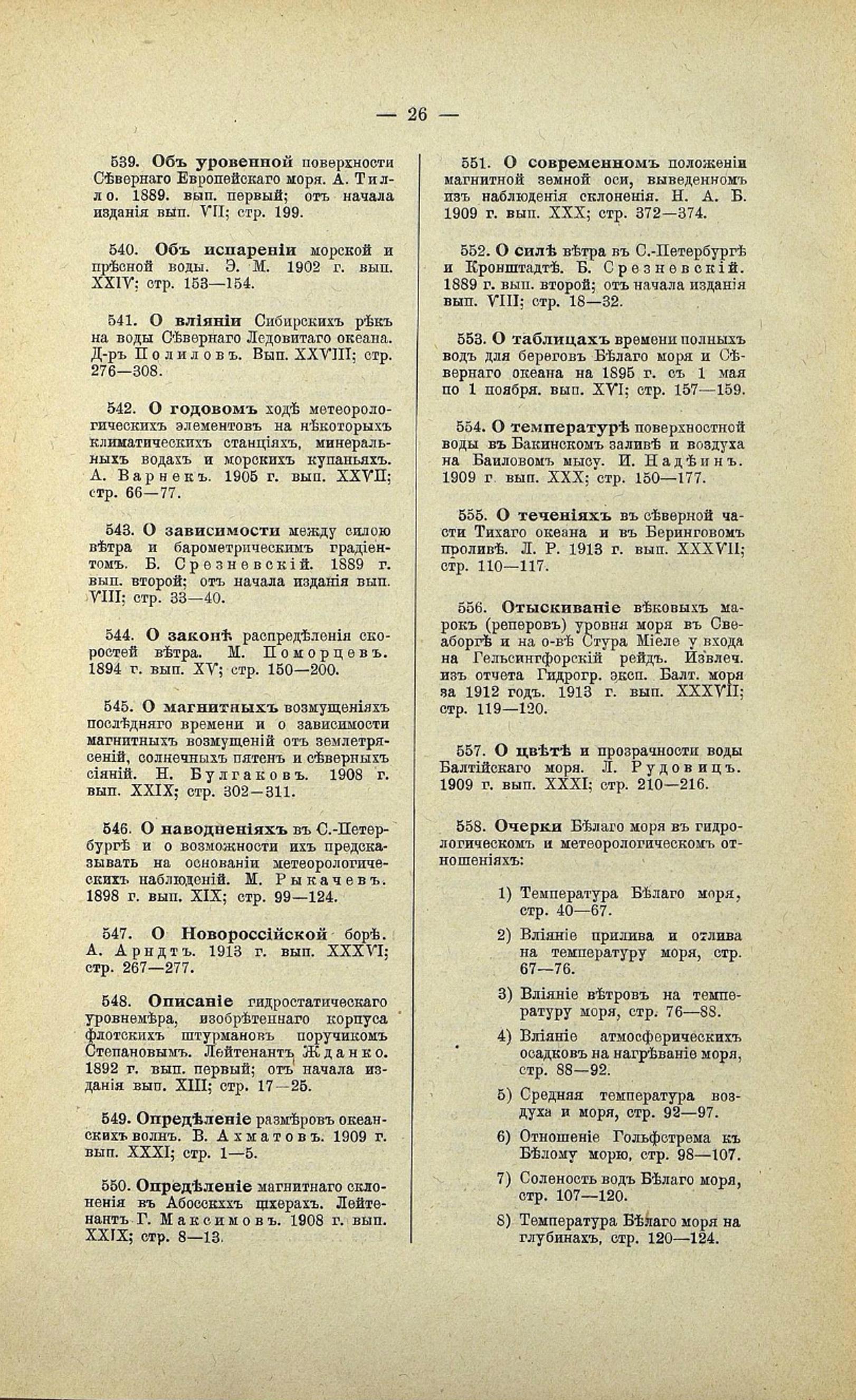 Гидрология, земной магнетизм и метеорология (научныя исследования, приборы, инструкции, методы наблюдений, результаты наблюдений) ... 21—30