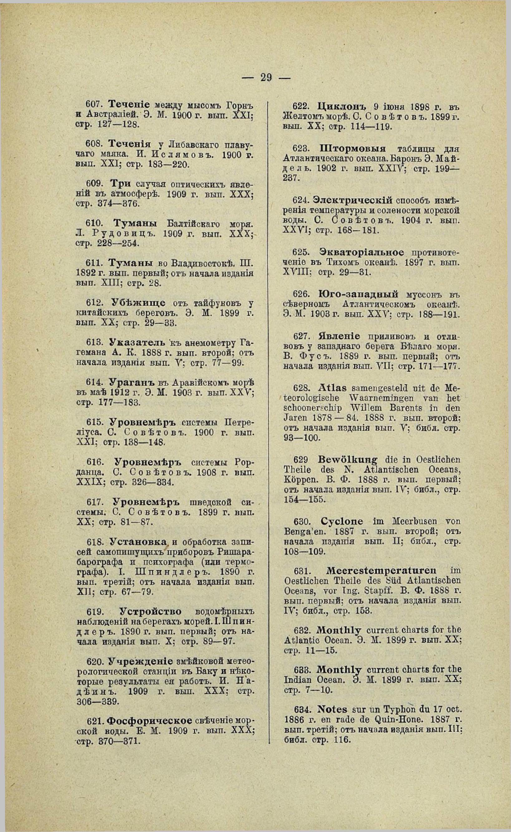 219. Юго-западный муссон в северном Атлантическом океане. Э. М. 1903 г. вып. XXV; стр. 188—191.