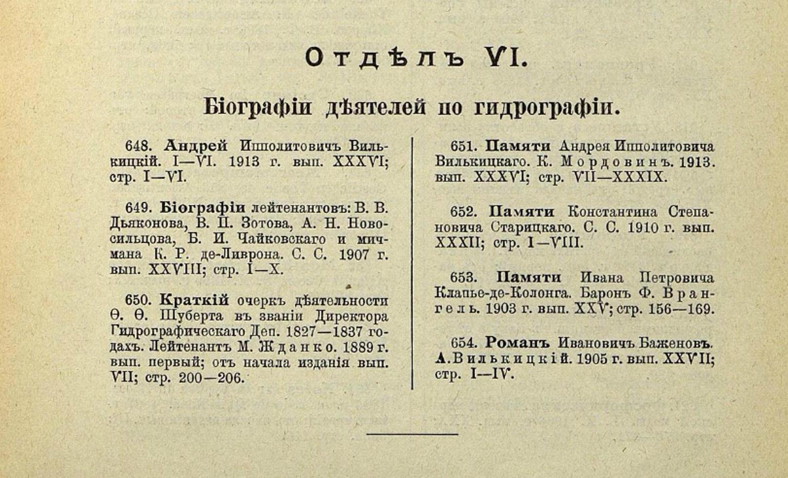 41. Телеграмма, полученная от И. д. начальника Экспедиции Север. Ледовитого океана капитана 2 ранга Б. А. Вилькицкого начальником Главного гидрографического управления из Петропавловска 19 окт. 1913 г. 1913 г. вып. ХХХVІІ; стр. 153—158.