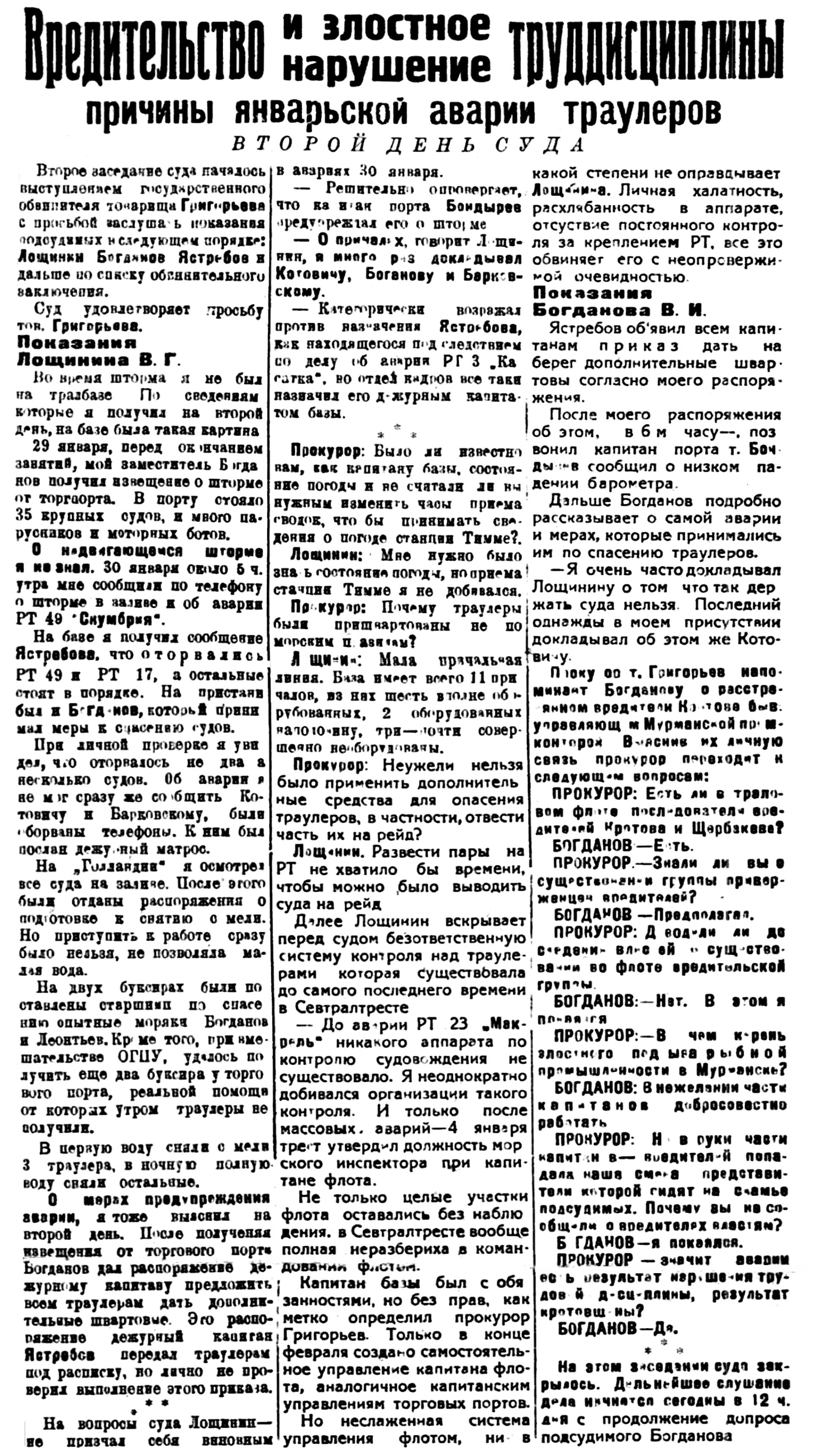 ПРОКУРОР: — В чем корень злостного подрыва рыбной промышленности в Мурманске?