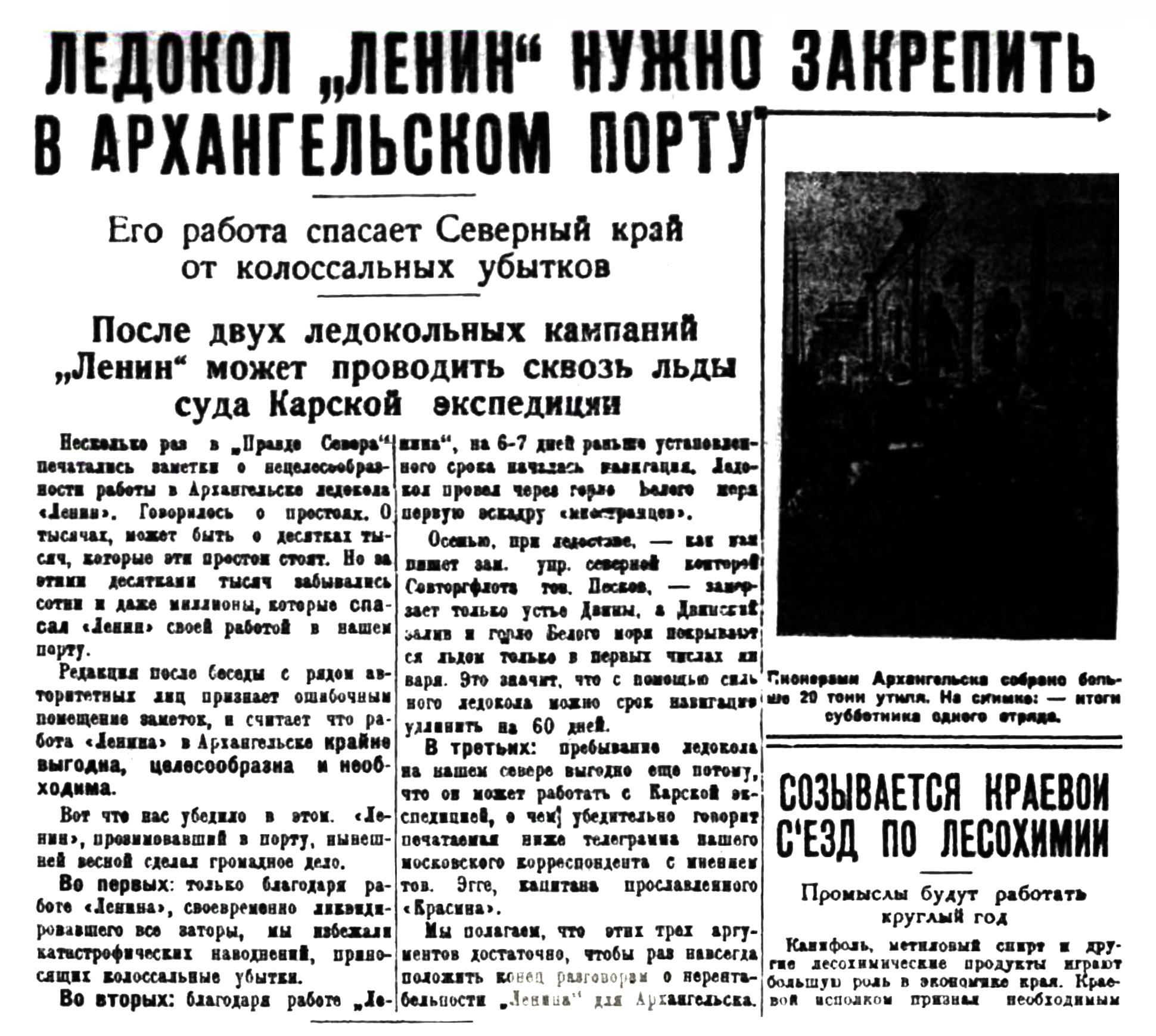 Правда Севера, 1930, №125, 1 июня 1930 г.ЛЕДОКОЛ "ЛЕНИН" НУЖНО ЗАКРЕПИТЬ В АРХАНГЕЛЬСКОМ ПОРТУ