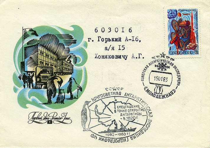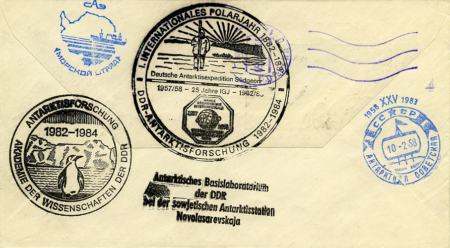 • 11-15.03.83 ст. Беллинсгаузен. Установлен памятный знак в честь открытия Антарктиды.