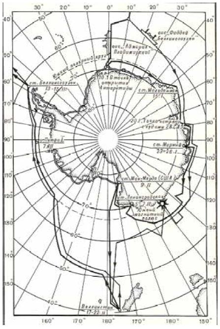 На самом деле произошло вот что. Когда анализировали ледовую обстановку в точке открытия Антарктиды, обратили внимание, что на космическом снимке нет довольно большого «языка» ледника Беллинсгаузена. На этом месте была четко видна полынья. Еще и еще раз сверялись с картой, точно накладывая на фотоснимок сетку широт и долгот. Результат тот же: ледник Беллинсгаузена уменьшился. Но окончательный вывод можно было сделать, только побывав в этой точке.