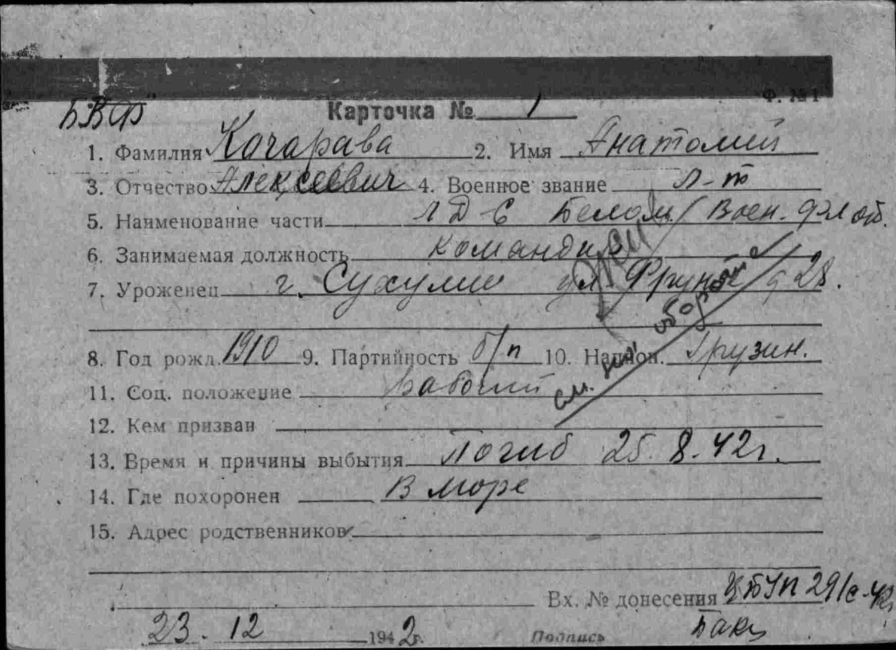 Последний капитан «Александра Сибирякова» Анатолий Алексеевич Качарава был награжден орденом Красного Знамени.