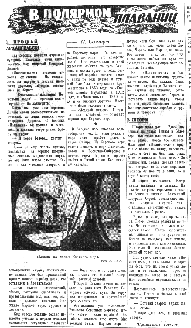В 13 часов 24 января 1937 года мы с радостью покинули Мурманск.