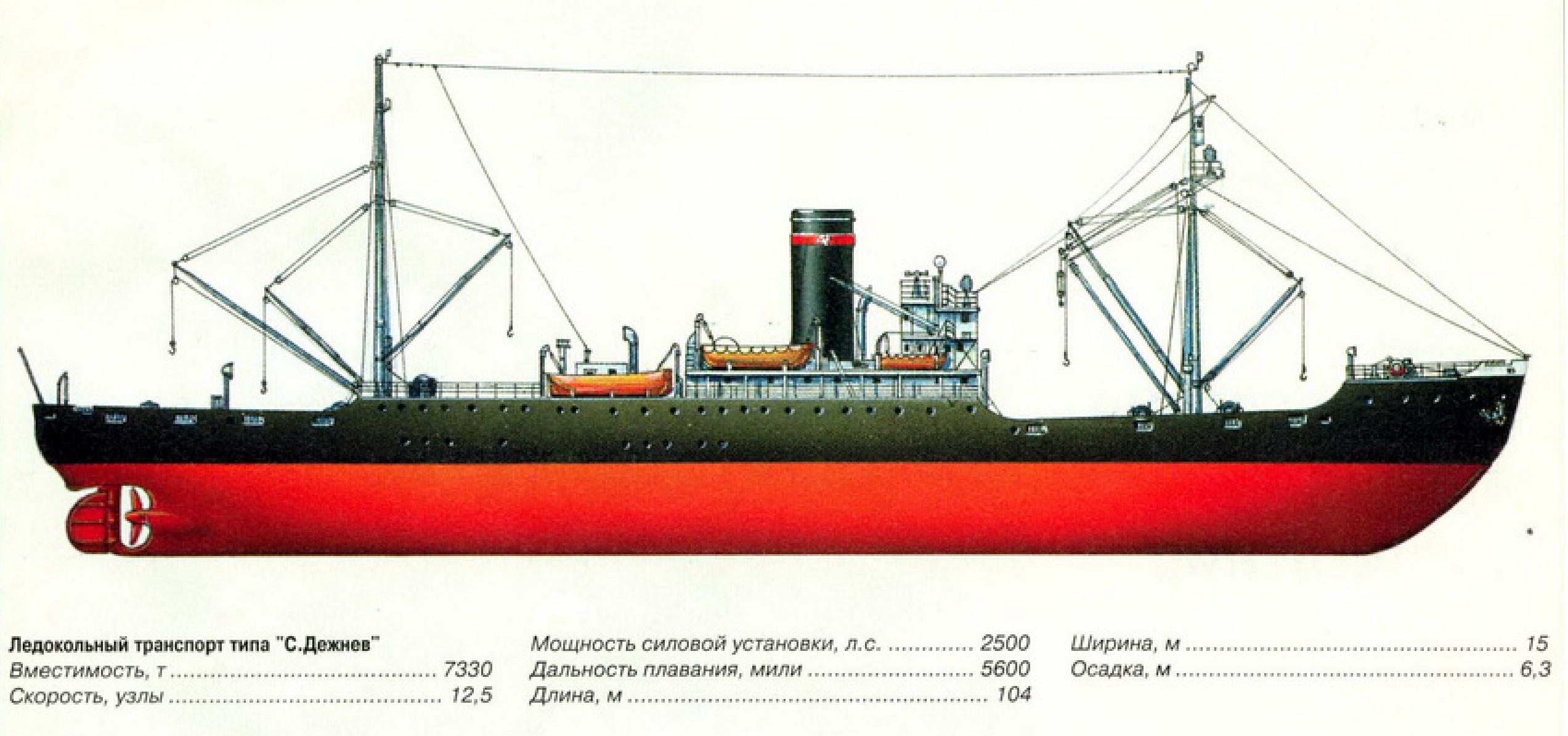 23 октября 1935 года на Балтийском заводе состоялась закладка первого ледокола — "Иосиф Сталин", потом заложили еще три однотипных корабля: в Ленинграде — “В. Молотов” и в Николаеве — “Л. Каганович” и “А. Микоян”. Почти одновременно с "И.Сталиным" заложили вместительные (6500 т) товаро-пассажирские суда ледового плавания "Севморпуть-1" и "Севморпуть-2", позже переименованные в "С. Дежнёв" и "С. Леваневский". Имея 1500-сильные машины, корпуса ледокольного типа, снабжённые 35-25-мм поясом, они стали первыми в мире специализированными сухогрузами, предназначенными плавать с ледоколами конкретного типа. //Техника-молодёжи, 1985. №12. - С.19.