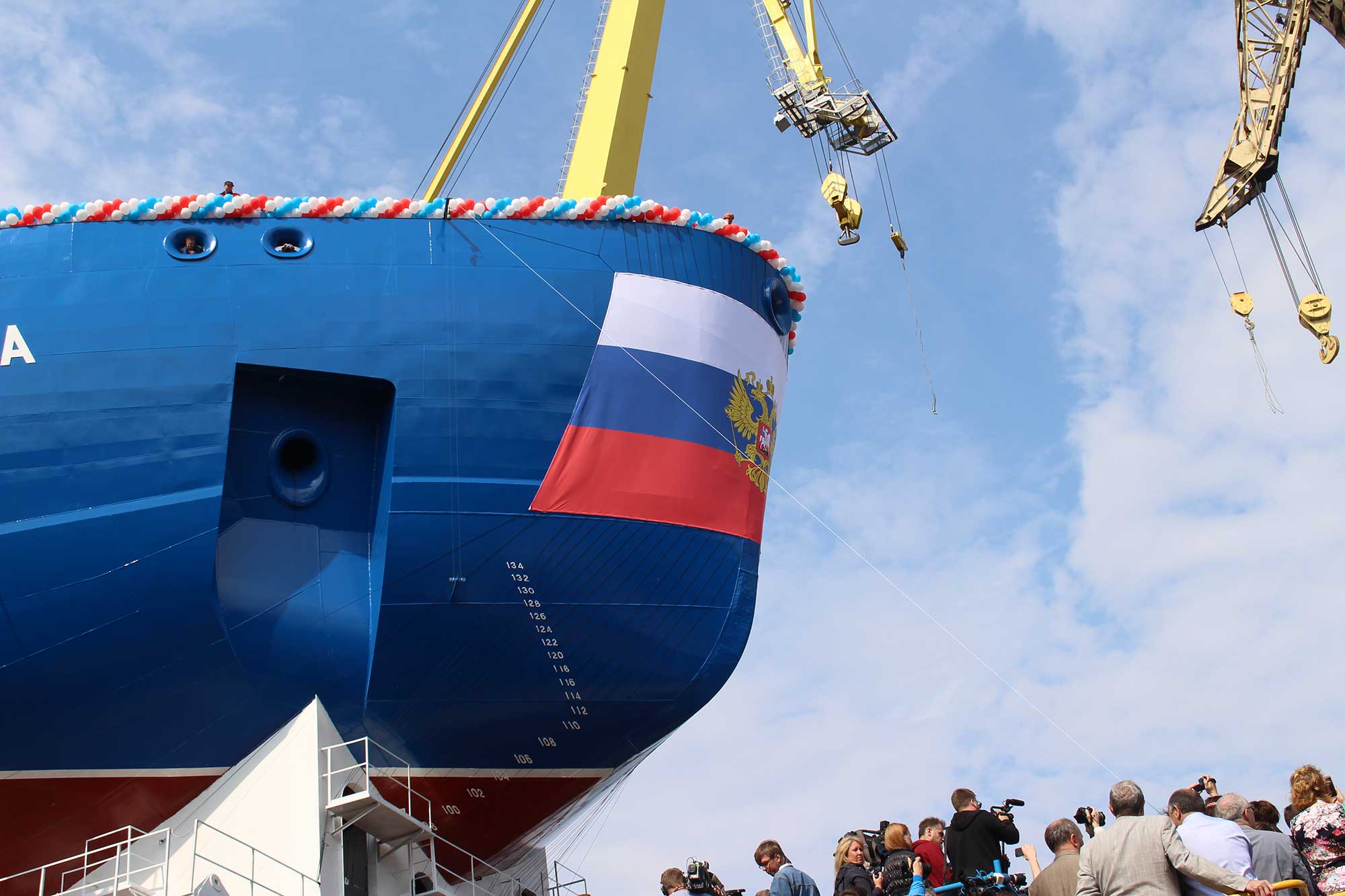 На церемонии ожидается участие председателя Совета Федерации Федерального собрания РФ Валентины Матвиенко, заместителя председателя правительства РФ Дмитрия Рогозина, губернатора Санкт-Петербурга Георгия Полтавченко, генерального директора госкорпорации "Росатом" Сергея Кириенко, члена Совета Федерации – президента Государственной полярной академии Артура Чилингарова, президента Объединенной судостроительной корпорации Алексея Рахманова.