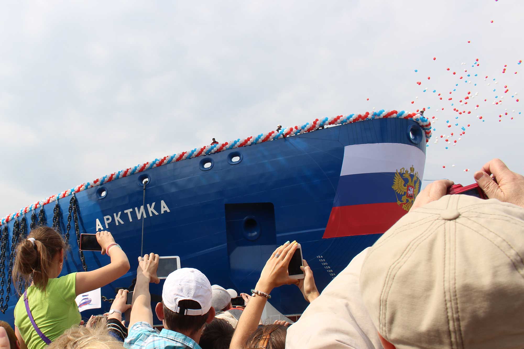 Ледокол спущен на воду. М. Дукальская вернулась с церемонии, принесла фотографии: