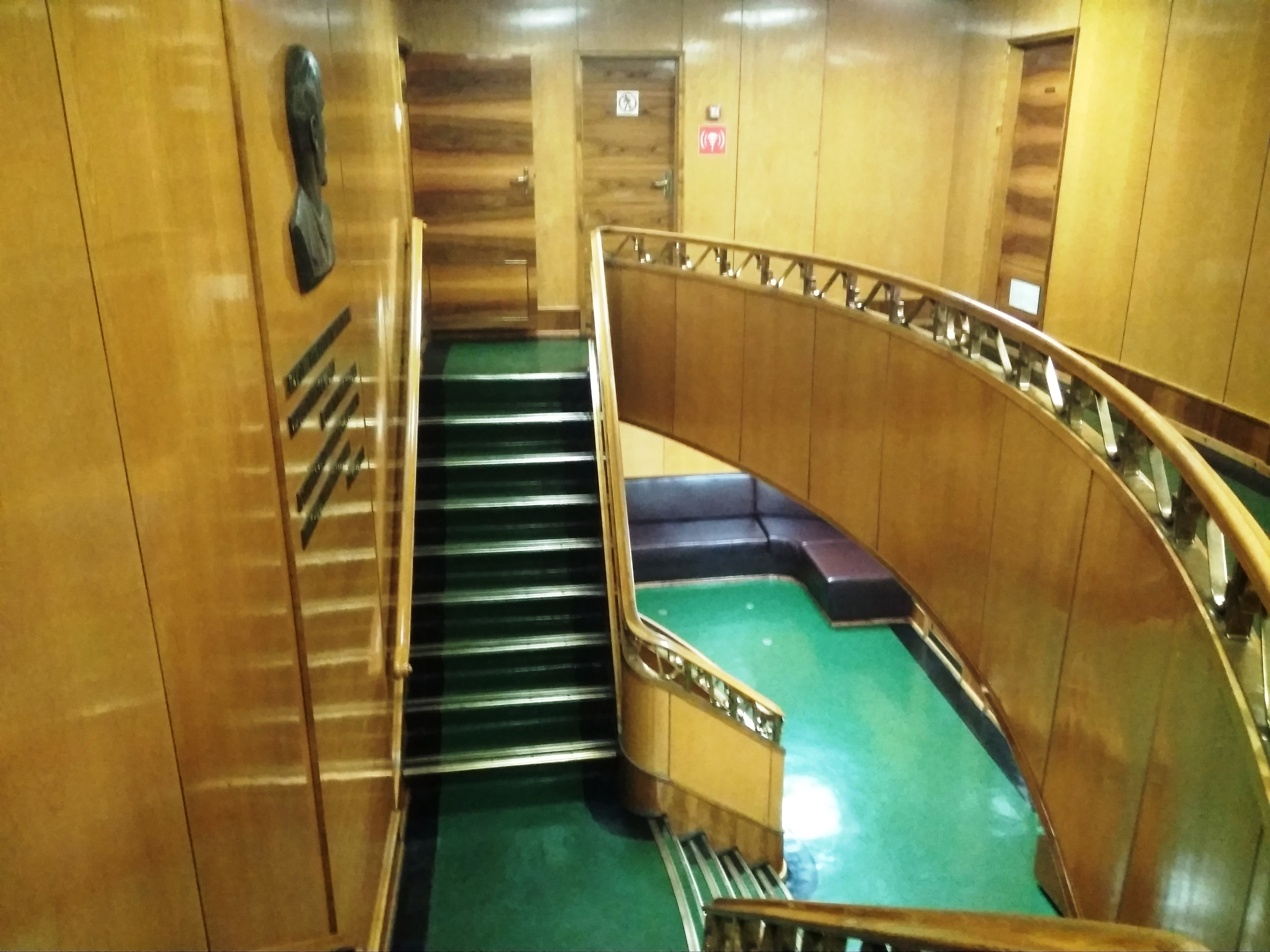 С палубы по трапам спускаемся во внутренние машинные отсеки, в многочисленные помещения. Их всего около тысячи. Идем по так называемым главным жилым коридорам, протянувшимся вдоль бортов. Здесь оборудуются одноместные и двухместные каюты для команды. В них предусмотрено много удобств для будущих мореплавателей.