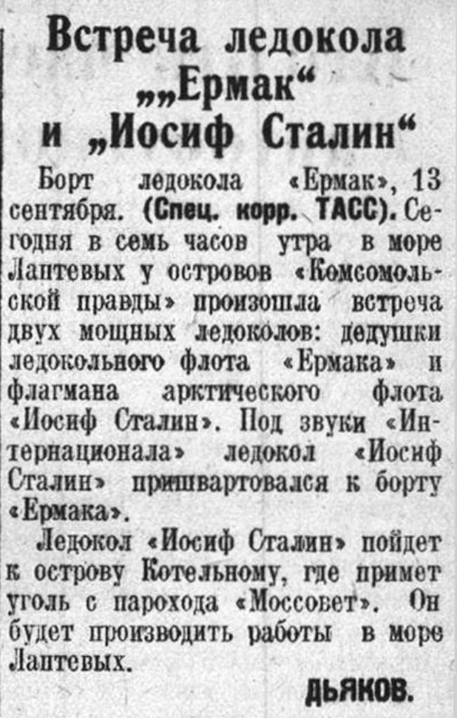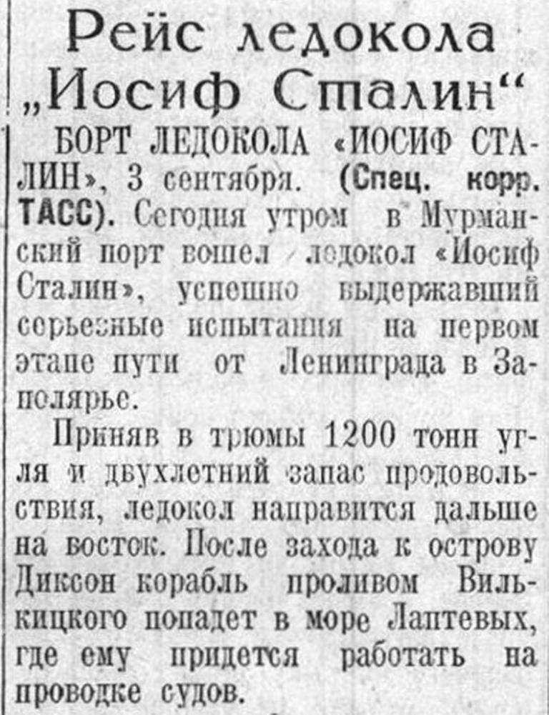 БОРТ ЛЕДОКОЛА «ИОСИФ СТАЛИН», 2 сентября. (Спец. корр.ТАСС). Сегодня в 8 часов утра были на траверзе мыса Нордкап — самой северной оконечности европейского материка.