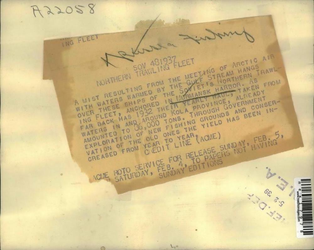 на буржуинском интернет торжище встретилось фото 1939 Press Photo Soviet Northern Trawling Fleet, Murmansk Harbor, Fishing Boats