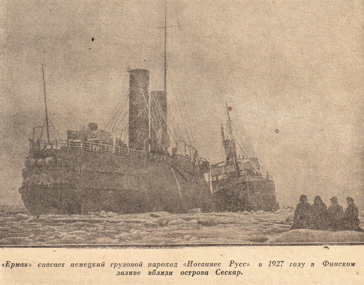 «Ермак» спасает немецкий грузовой пароход «Иоганнес Русс» в Финском раливе вблизи острова Сескар.
