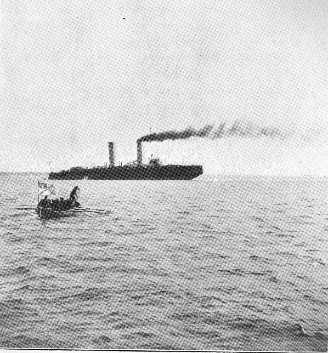Фотография: «Ермак» участвует в работах по спасению броненосца береговой обороны «Генерал-Адмирал Апраксин» у острова Гогланд, 1900 г.