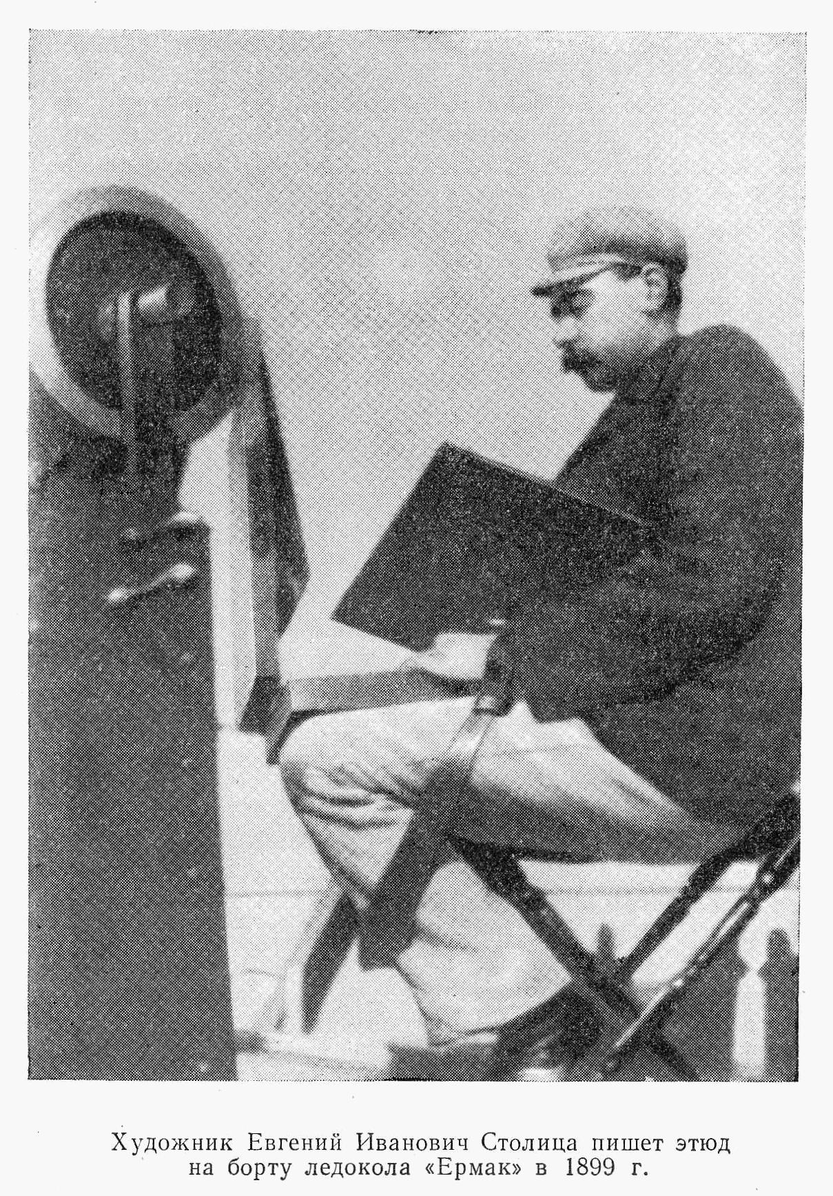 Замечательные плавания ледокола «Ермак» 1899 года вошли яркой страницей в историю полярных исследований конца XIX века. Спутником адмирала Степана Осиповича Макарова в этих плаваниях был художник Евгений Иванович Столица.