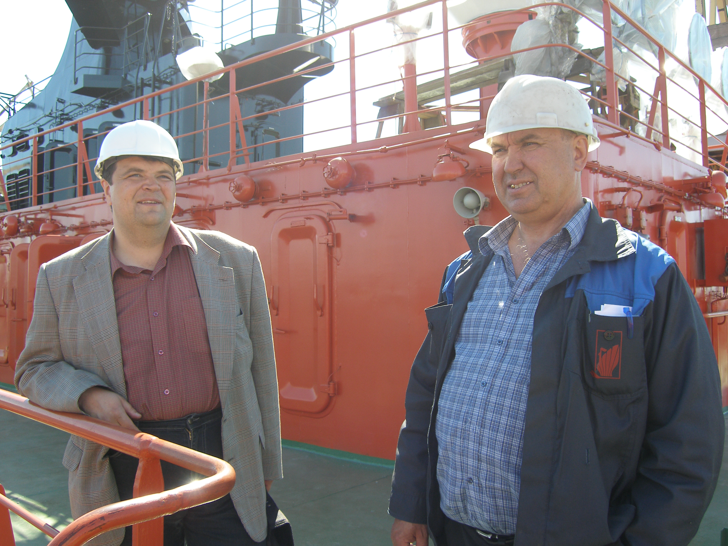 Думаю, вполне уместно вспомнить историю создания ледокола и мой с С.Лукьяновым первый визит на ледокол. Балтийский завод. Лето 2006 года. В спецовке - главный строитель а/л "50 лет Победы" Юрий Петрович Синельников