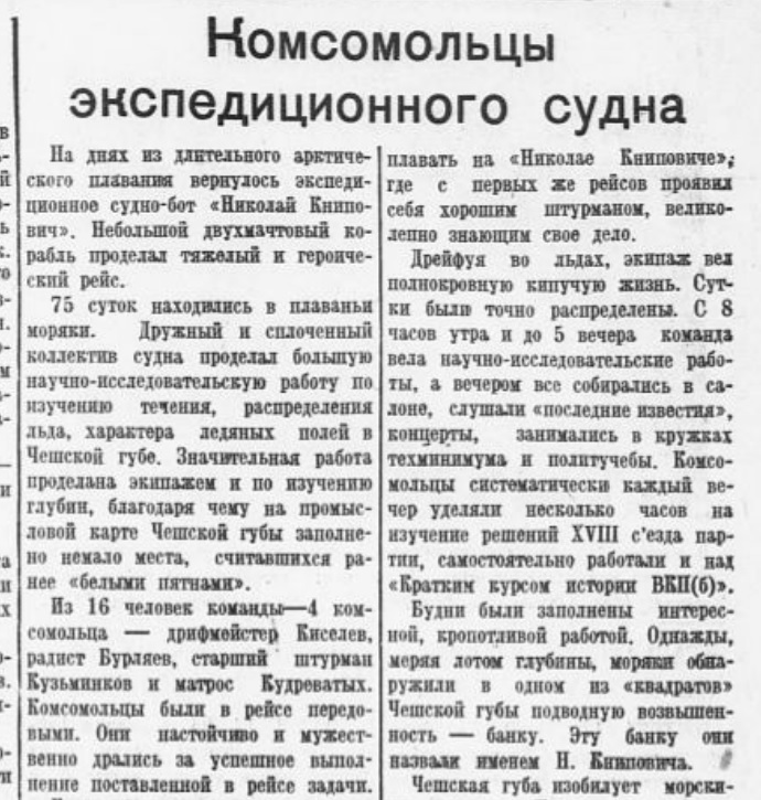 Ю. Ю. Марти, М. П. Сомов и др. В 1932 г. «Николай Книпович» совершил
