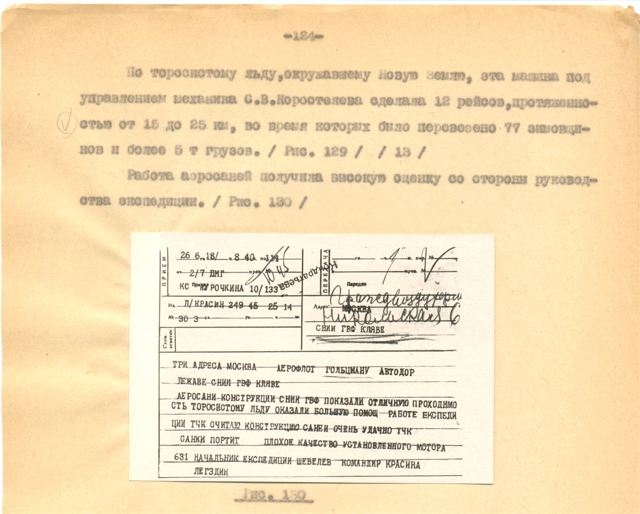 рис. 130: телеграмма с борта ледокола «Красин»: пишет:Адрес: