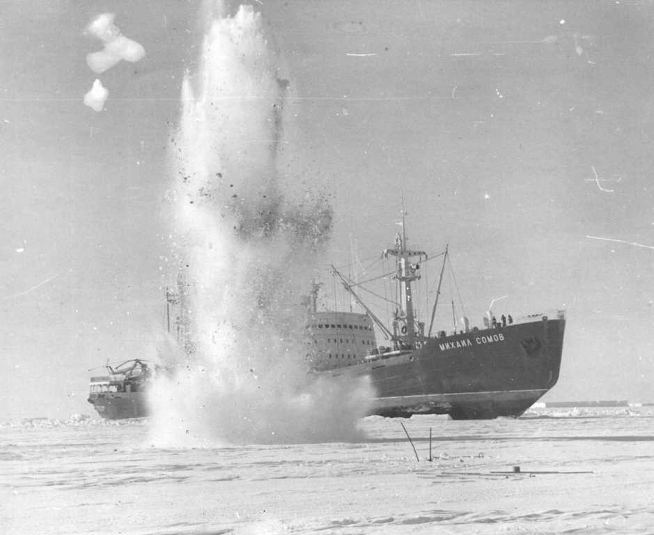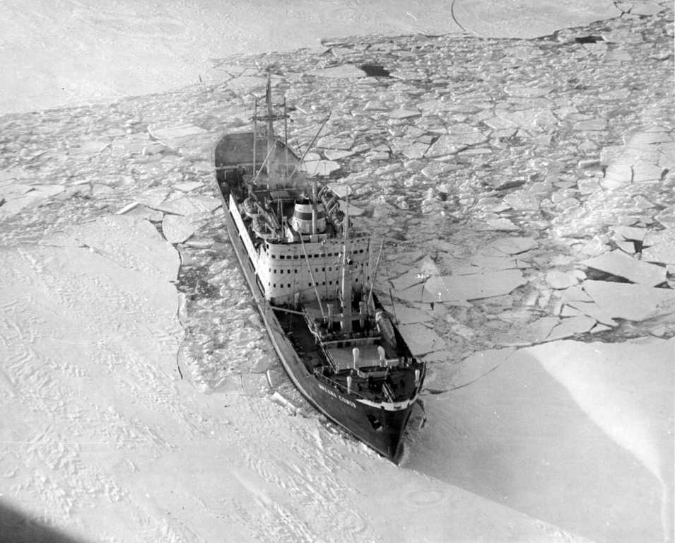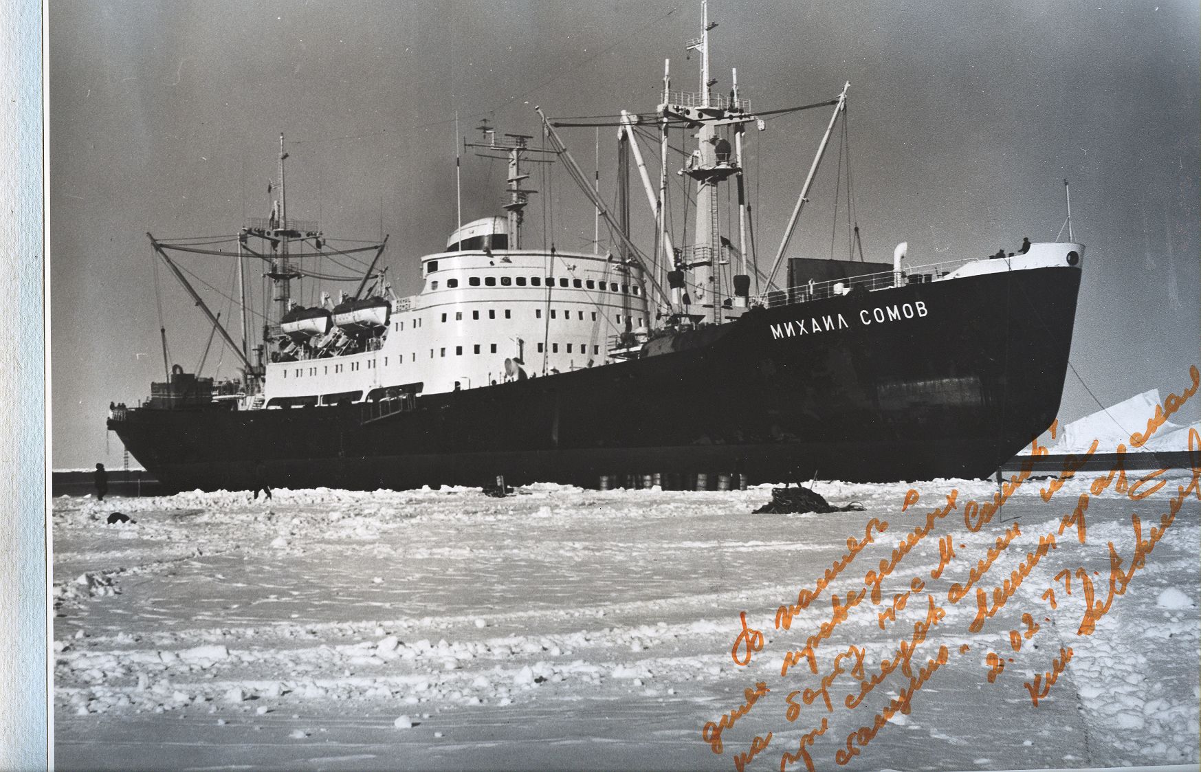 Снимок НЭС "СОМОВ" в ледовам плену (1977) от капитана Михайлова - Фролову.