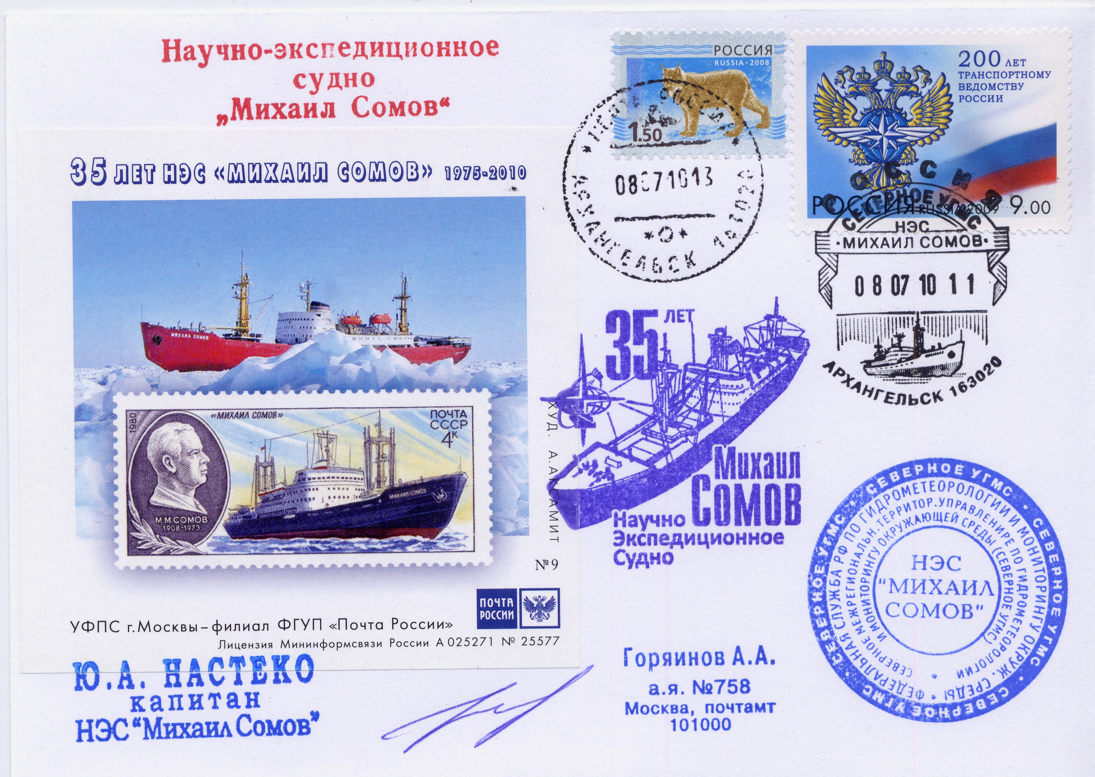 Научно-экспедиционное судно Северного УГМС «Михаил Сомов» после длительного рейса в Арктику вернулось в порт Архангельск 30 октября 2011 года. Полярный поход стал самым продолжительным за последнее время и продлился 102 дня.