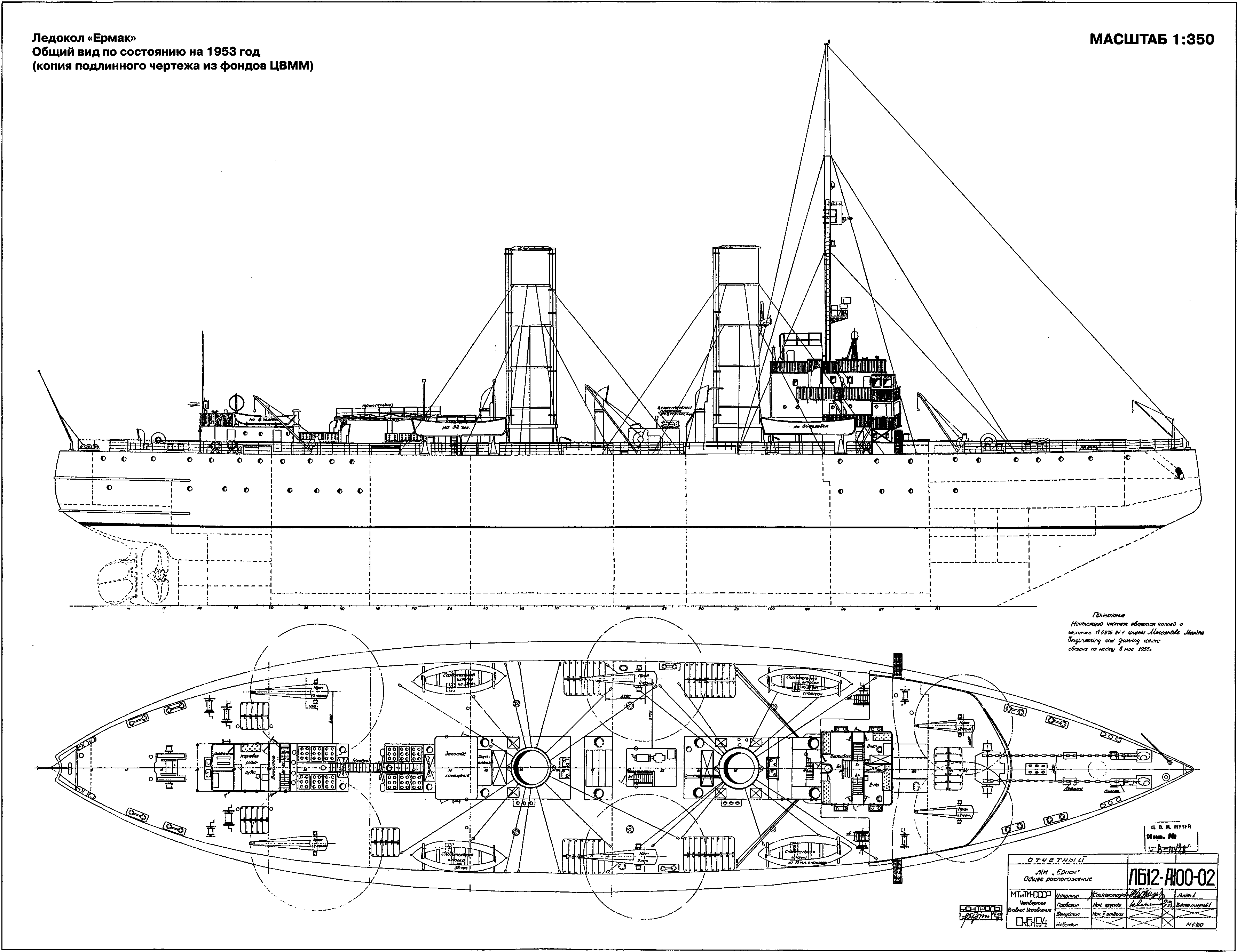 1. Ледокол «Ермак». Общий вид по состоянию на 1953 год. (копия подлинного чертежа из фондов ЦВММ)