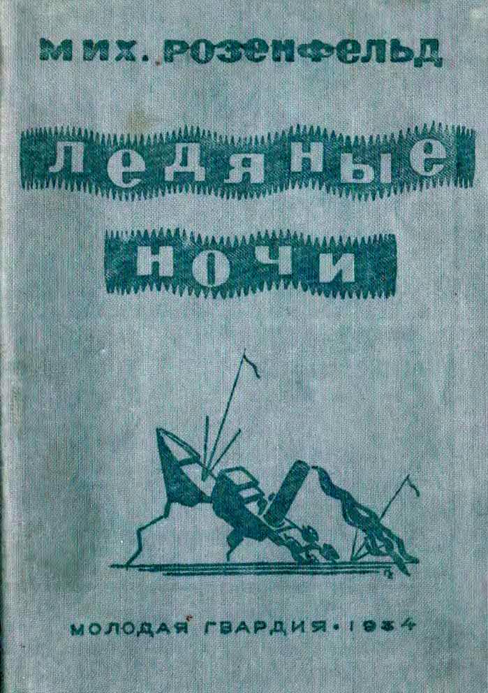 Розенфельд М. К.Ледяные ночи: Документальный рассказ журналиста, участника необычайного путешествия в зимнюю Арктику / Мих. Розенфельд. - 2-е изд. - Москва : Молодая гвардия, 1934. Обложка Е. Перникова.