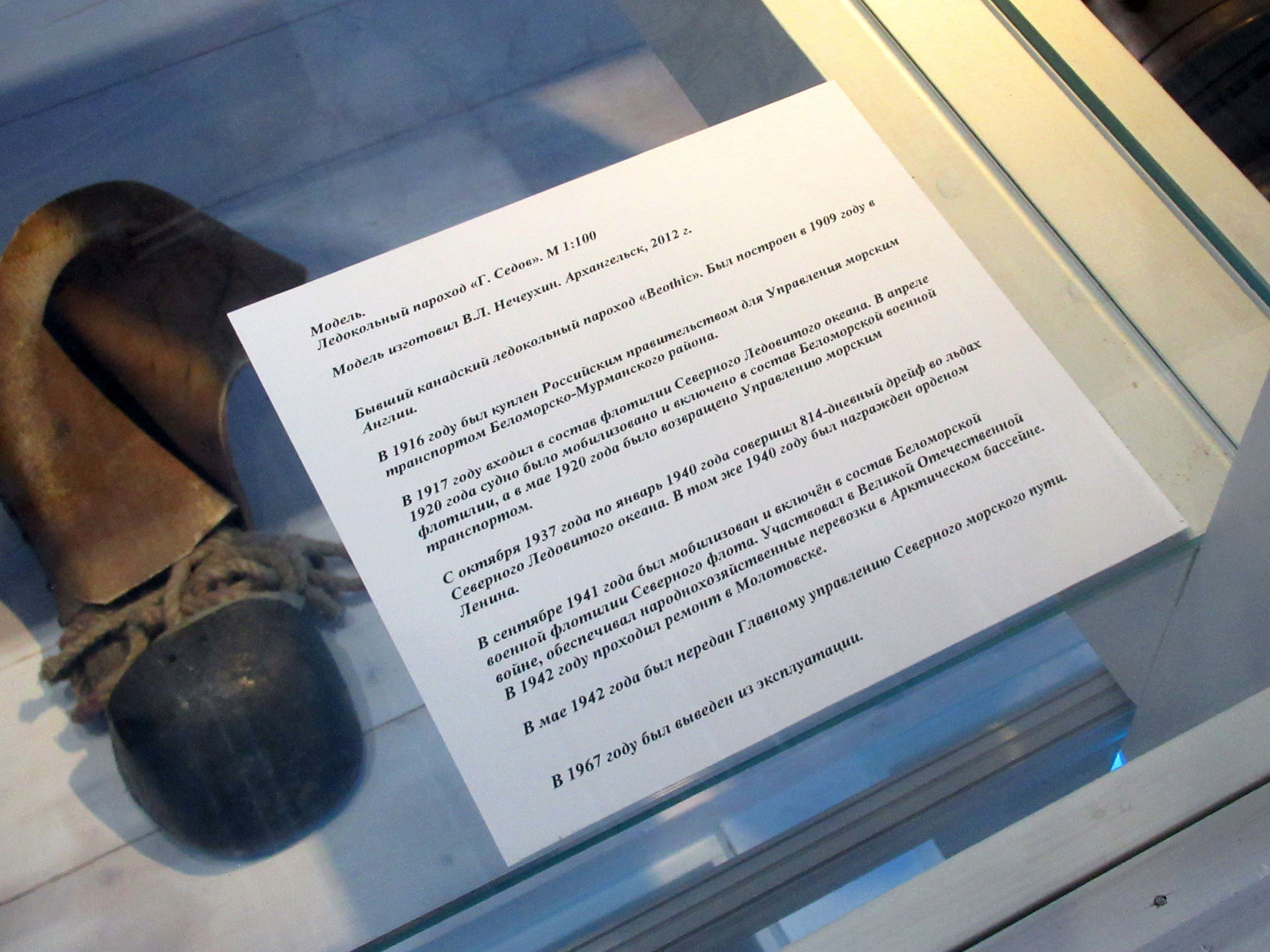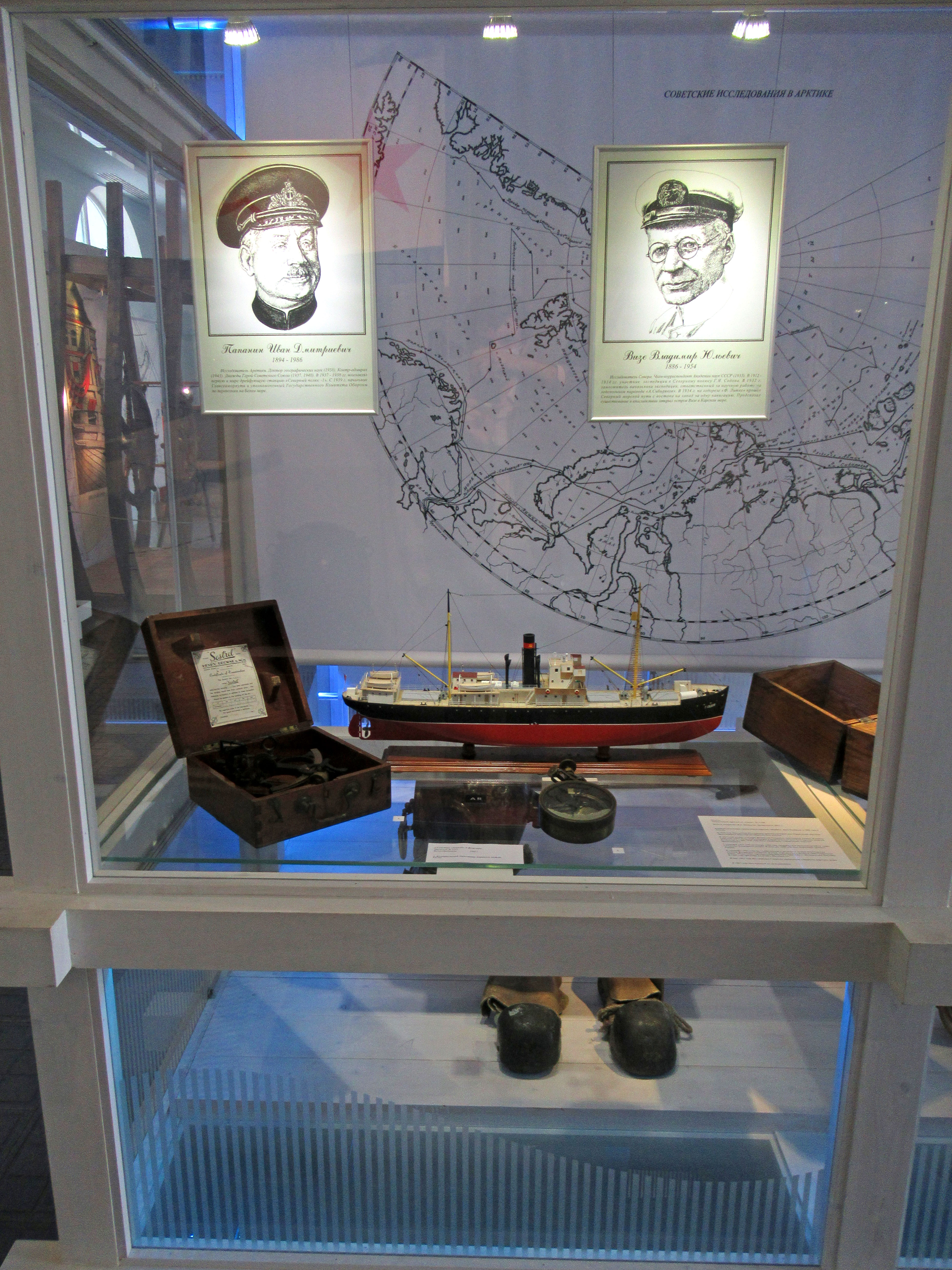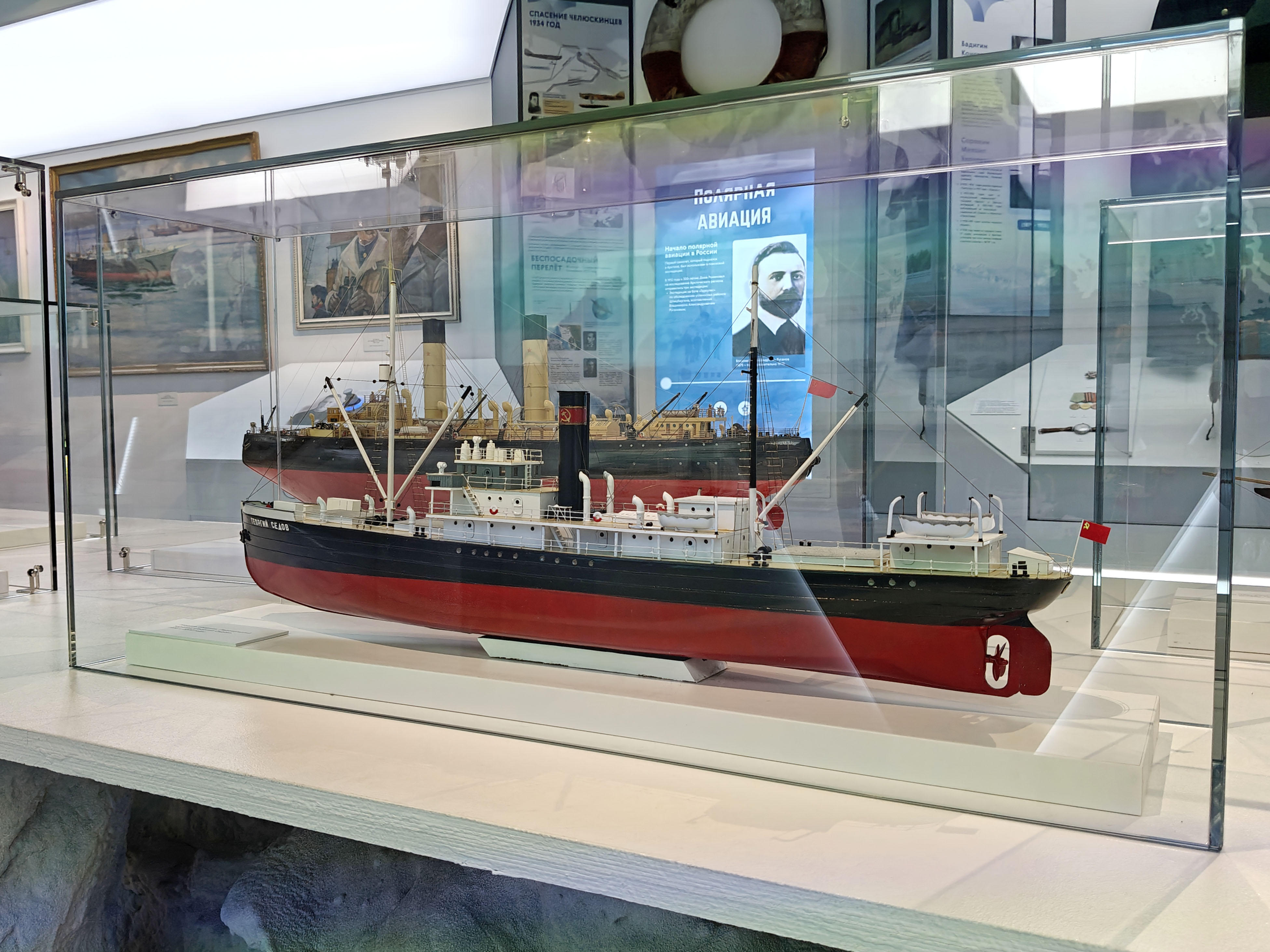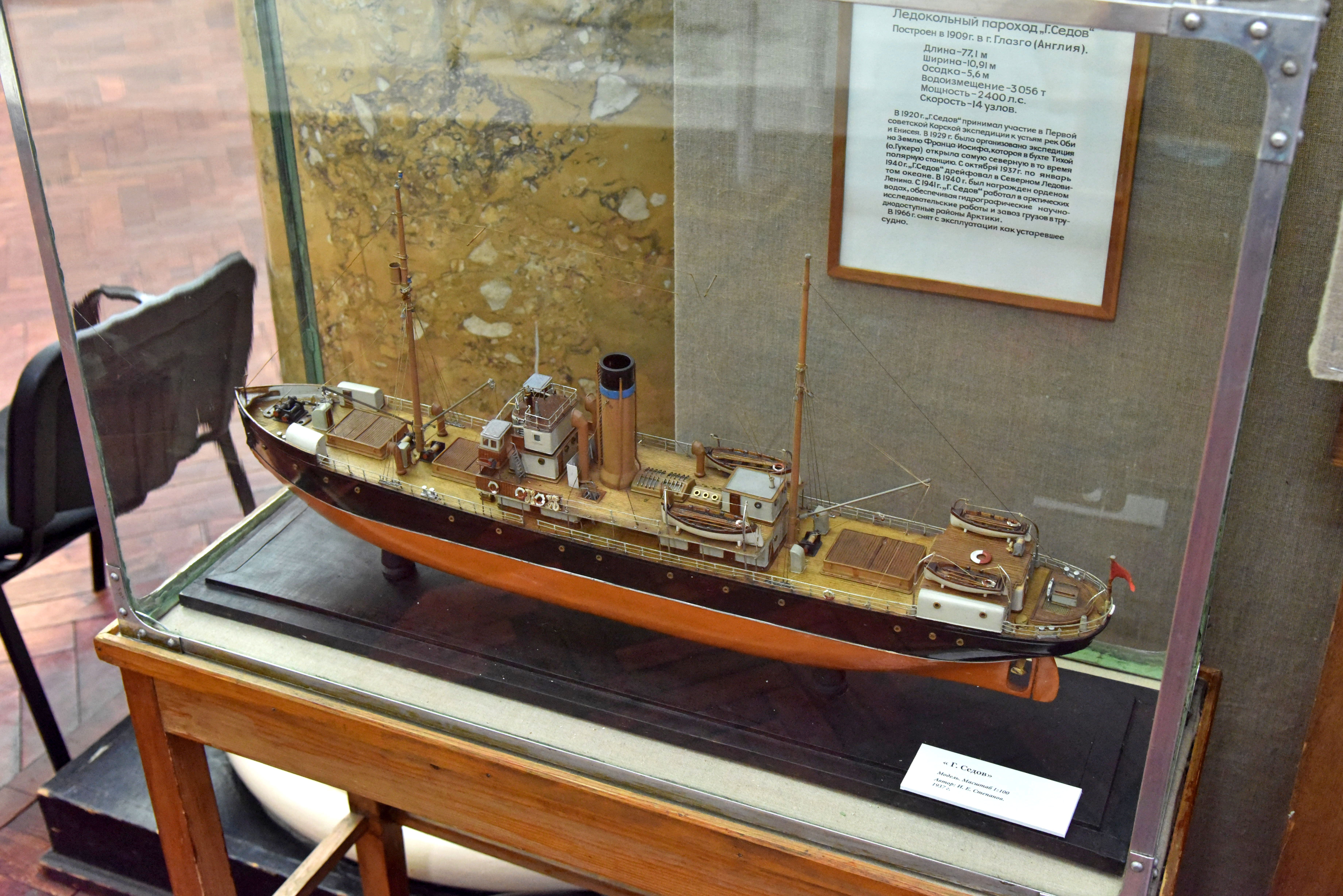 Другая модель л/п "Георгий Седов" из коллекции Мурманского областного краеведческого музея. Изготовлена в 1940 г. Размеры 175,0х40,0х25,0 см. Изображение и информация из Госкаталога.