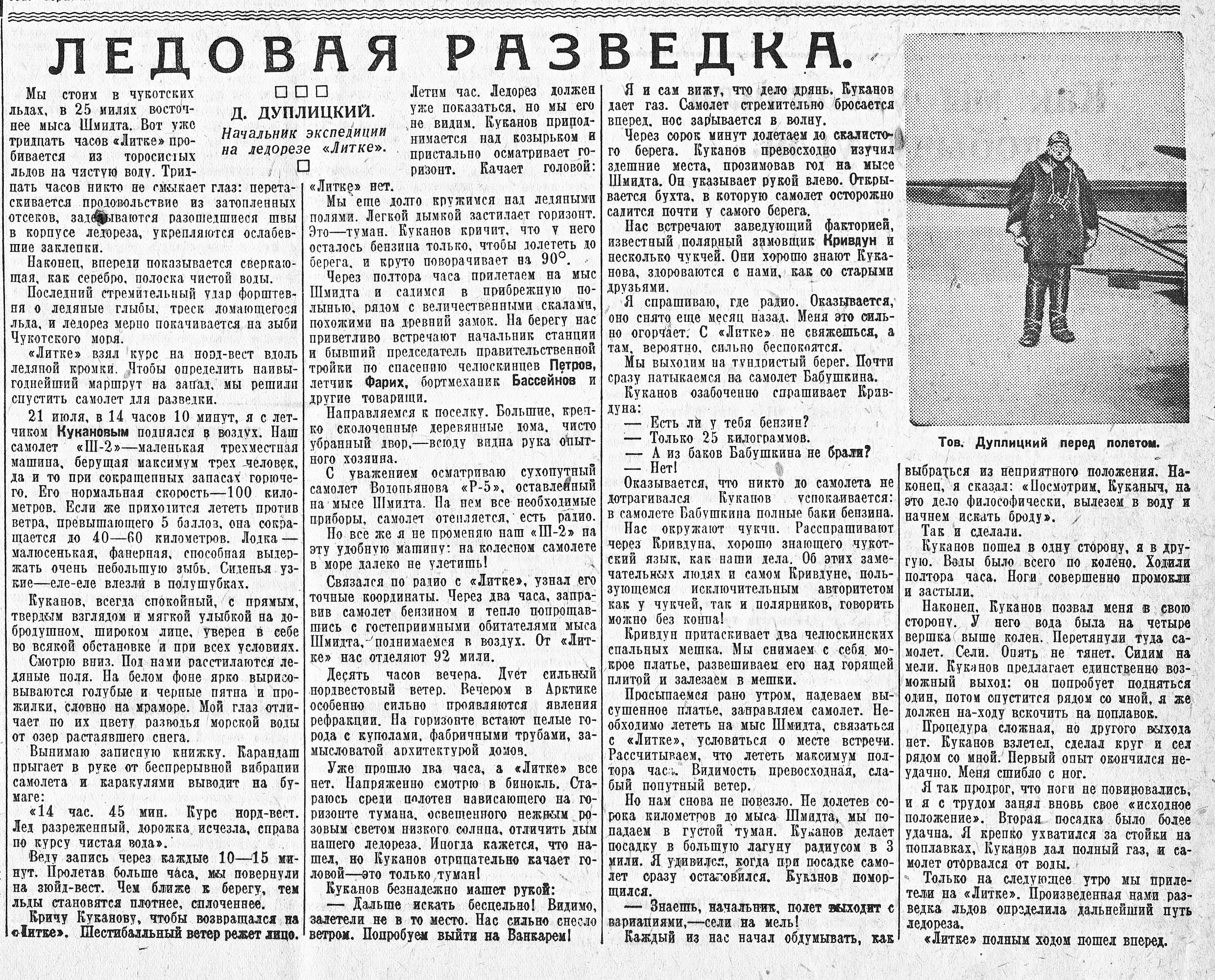 Всегда, в самую решительную минуту похода на опаснейшем участке появлялся начальник экспедиции краснознамёнец Дуплицкий. Партиец, прошедший военную выучку, он и на арктический корабль перенёс красноармейскую дисциплинированность и чёткую организованность. Заместитель Дуплицкого Бронштейн и помполит Щербина являли собой прекрасный образец партийцев-организаторов, заражавших всех своим энтузиазмом и личным примером увлекавших за собой коллектив.
