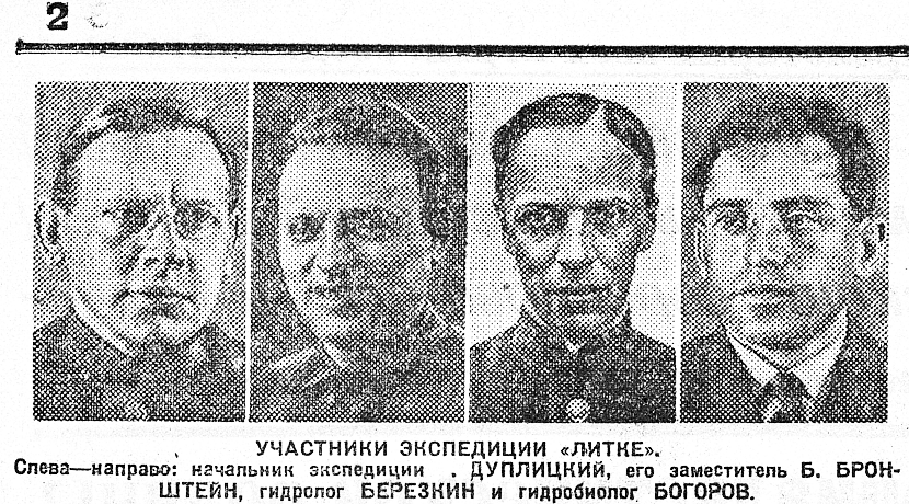 а также (предполагаю) : второй слева в верхнем ряду - вероятно заместитель начальника экспедиции Борис Александрович Бронштейн.