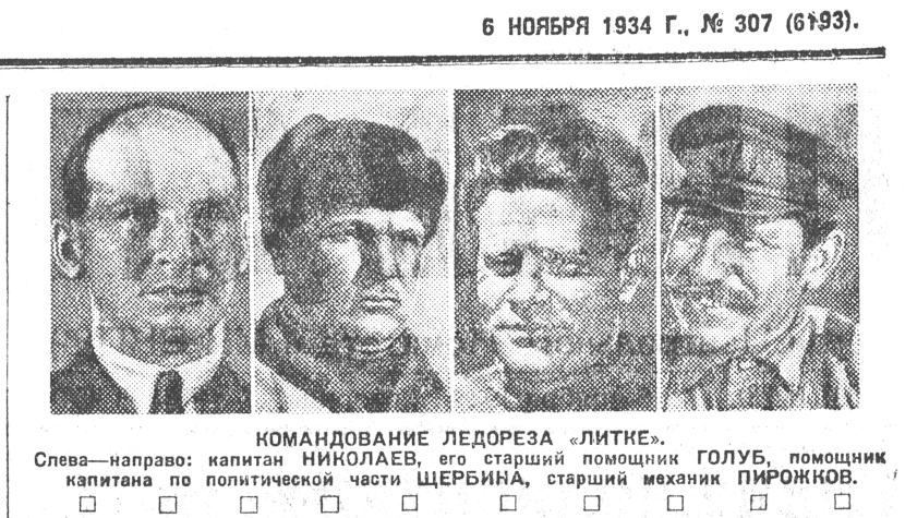 Коллектив, работавший в кочегарке и у машины, показал высокую дисциплинированность: здесь выделялись серьёзным отношением к делу кочегарный старшина и секретарь ячейки Трофимов, проведший уже в Арктике северо-восточную экспедицию, второй старшина кочегарки Карклин, за плечами которого 30-летний производственный стаж на Дальнем Востоке, матрос Пономарёв — лучший вахтенный рулевой, плотник Савенко, устранявший быстро и умело течи судна. Во всё время плавания «Литке» поддерживал бесперебойную радиосвязь с Нагаевым благодаря Куксину и Романову, которые ещё раз продемонстрировали перед всем миром высокую технику наших арктических радистов.