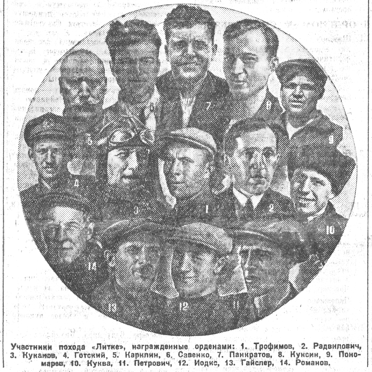 Участники экспедиции краснознамённого «Литке» чужды были всякого рекордсменства. Успех похода об'ясняется главным образом большевистской организованностью и сплочённостью всего экипажа, высокой сознательностью социалистического долга каждого его участника в отдельности.
