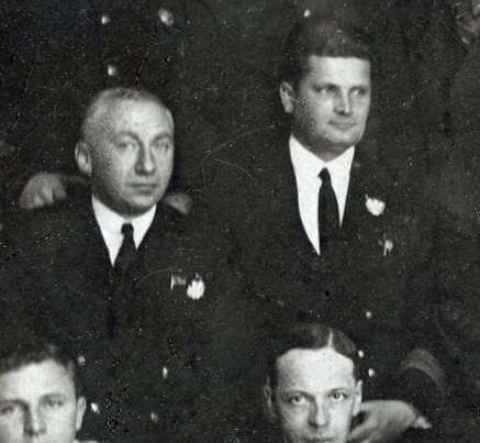 (на уровне предположения) лично мне кажется более очевидным, что второй справа в нижнем ряду - третий помощник капитана Валентин Иванович Петрович.