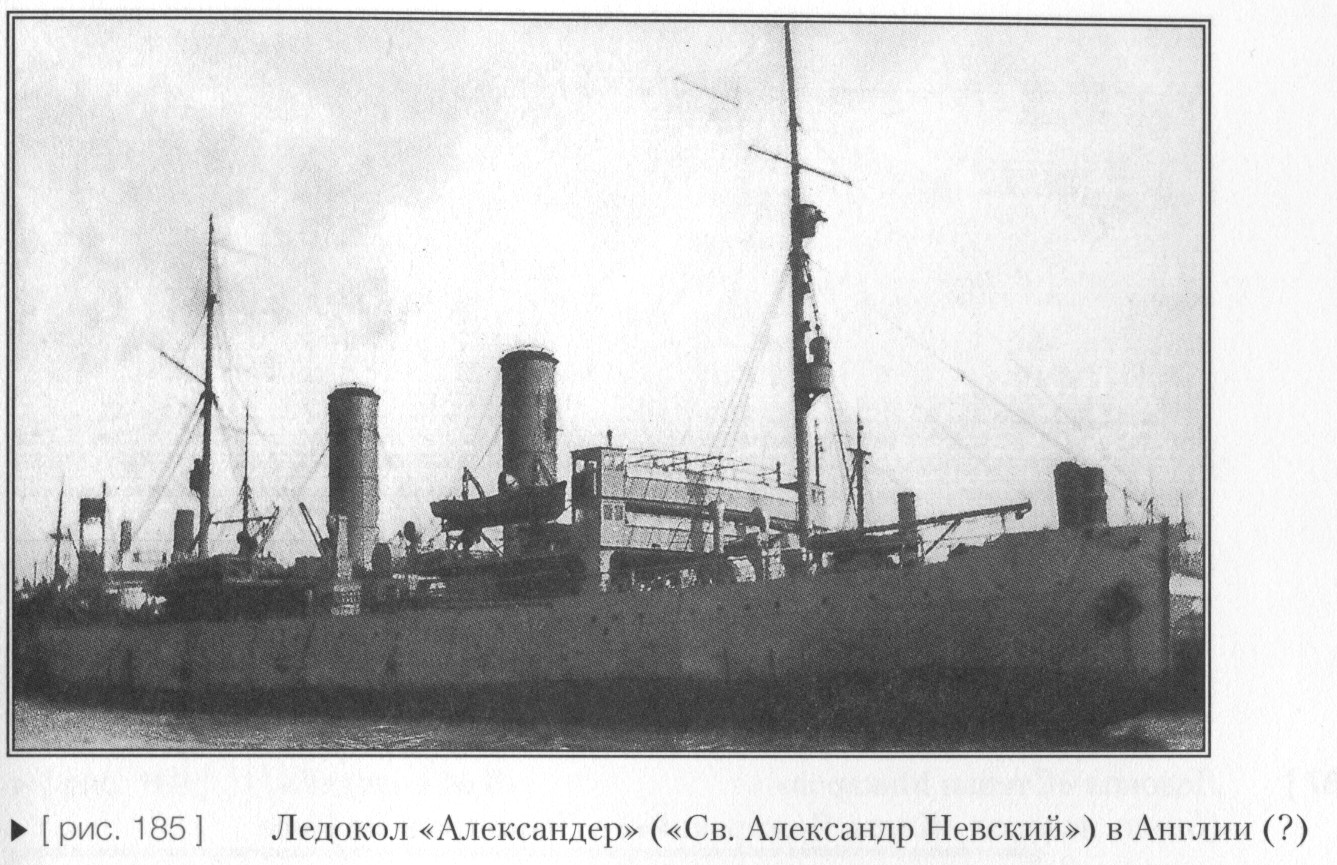 Вскоре выяснилось, что новые ледоколы [ прим.: по аналогии с ледорезными «удальцами» эти ледоколы, созданные по типу «Волынца», можно условно назвать «северными волынцами». ] отличались от прототипа не только проектами, но и качеством постройки корпусов и механизмов. Корпус ледокола «Князь Пожарский» был склепан так небрежно, что постоянно протекал. Эта особенность ледокола стала его «хронической болезнью», что вызывало необходимость частых ремонтов. Зато проект третьего ледокола и его воплощение в металле фирмой Армстронга явились образцовыми. «Св. Александр Невский» (позднее «Ленин» и «Владимир Ильич») при общей мощности главных машин на 1000 л.с. большей, чем у «Минина» или «Пожарского», потреблял такое же количество угля! Но армстронговцы не уложились в контрактные сроки. Ледокол спустили на воду лишь в декабре 1916 г., а русский экипаж отправился в Ньюкастл принимать судно почти через год — в октябре 1917 г. [ прим.: Технический журнал приемки «Св. Александра Невского» доставил в Россию М. В. Николаев, его капитан, назначенный в 1917 г. Любопытно, что в Архангельск он вернулся в 1919 г. на борту своего же ледокола, названного англичанами «Александер» ] [222] Вскоре на ледоколе подняли английский флаг, под которым, кстати, он плавал (в том числе и на Русский Север) в течение 4 лет. В конце 1921 г. его удалось выкупить у англичан [ прим.: «Ленин», один из лучших российских ледоколов, на скорости в 1 уз. ломал лед толщиной 0,7 м. ].