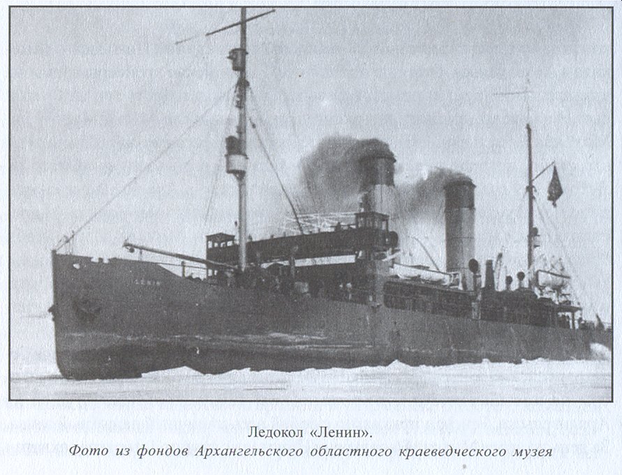 ... Основная тяжесть по проводке союзных конвоев во льдах выпала на долю линейного ледокола "Ленин". Из-за сравнительно небольшой осадки он имел возможность работы на всех фарватерах Северной Двины. За годы войны он прошел во льдах 22 тыс. миль. Ледокол участвовал в проводке 778 транспортов, в том числе 343 союзных.