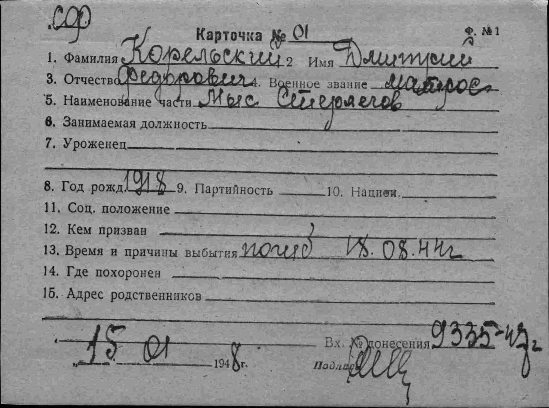 Послевоенные архивы сохранили подробности его последних часов. В районе полуострова Заря «Норд» подстерегла немецкая лодка U-957. Торпед фашисты не тратили, всплыли и расстреляли из орудия деревянное суденышко. Первым же снарядом «Норду» снесло рубку, после второго попадания бот загорелся и вскоре затонул. Из воды немцы подобрали только четверых: лейтенанта по фамилии Скоморох, обожженного боцмана Рогачева, маячного мастера и юнгу. Фашисты доставили их в Норвегию. Там моряков отправили в концлагерь, а дальше их следы затерялись. В архивных документах значилось - юнга. Быть может, это был Литвиненко?