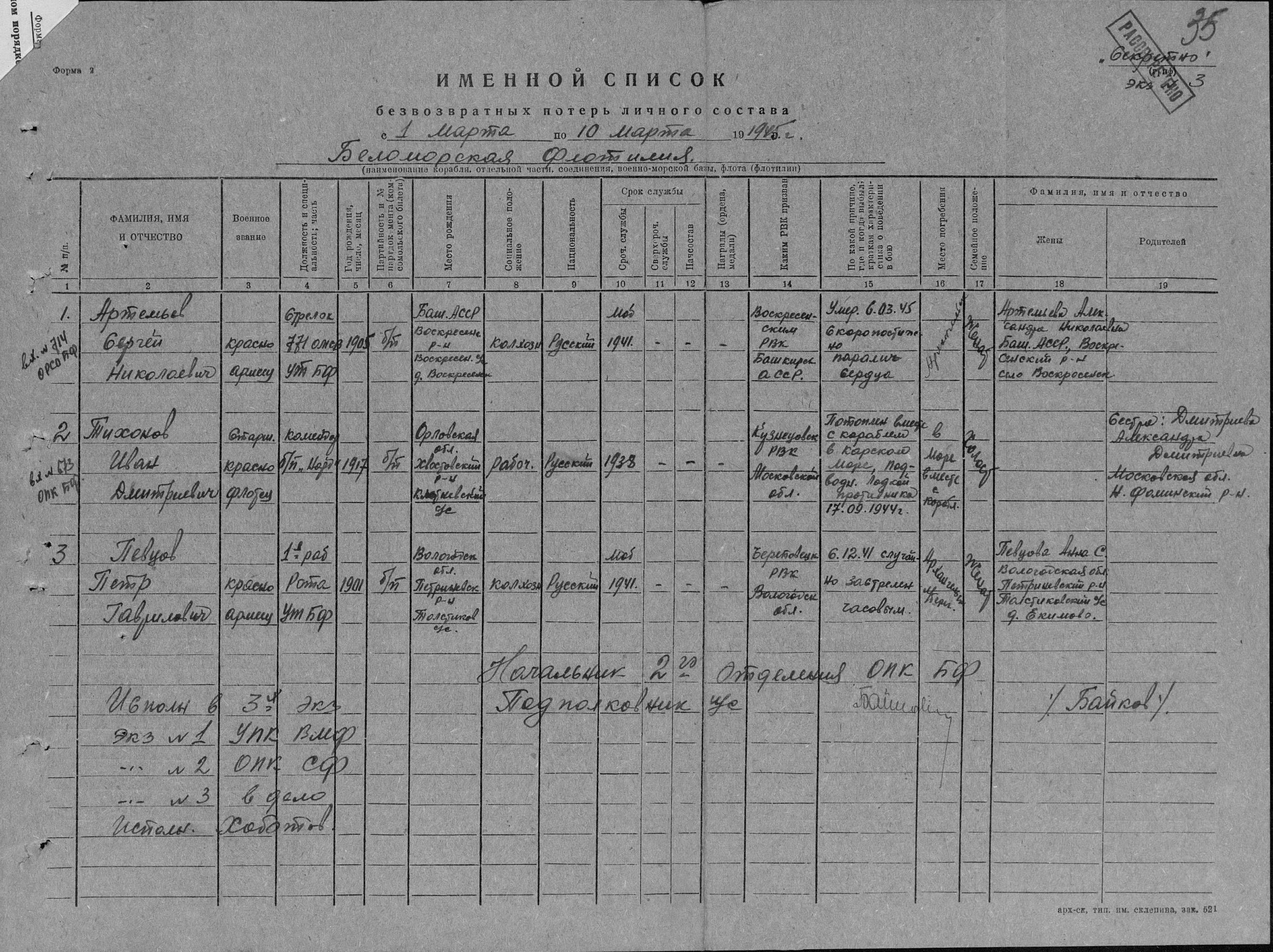 В 1950 году вернулись в Архангельск после демобилизации П. Г. Марчук и Е. М. Полев. Петр Григорьевич Марчук после окончания техникума и учёбы в институте работал в Архангельске на Соломбальском ЦБК, прошёл путь от электромонтёра до главного энергетика комбината. Евгений Михайлович Полев окончил Архангельский лесотехнический институт, работал на разных должностях в Архангельской области, а с 1963 года жил и работал в Северодвинске.