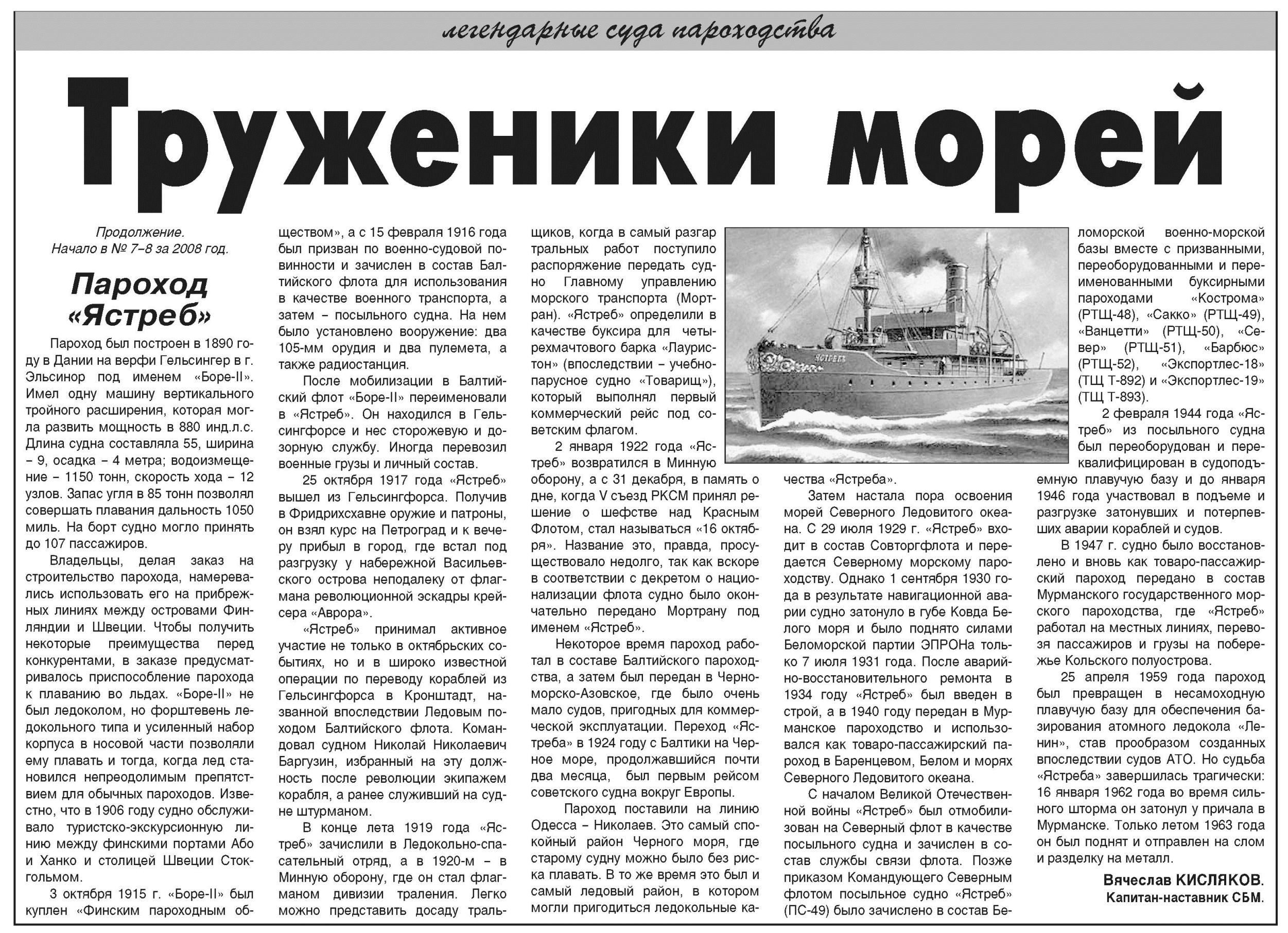 Пароход "BORE-II" - " Ястреб". 1900-1963 г.г.