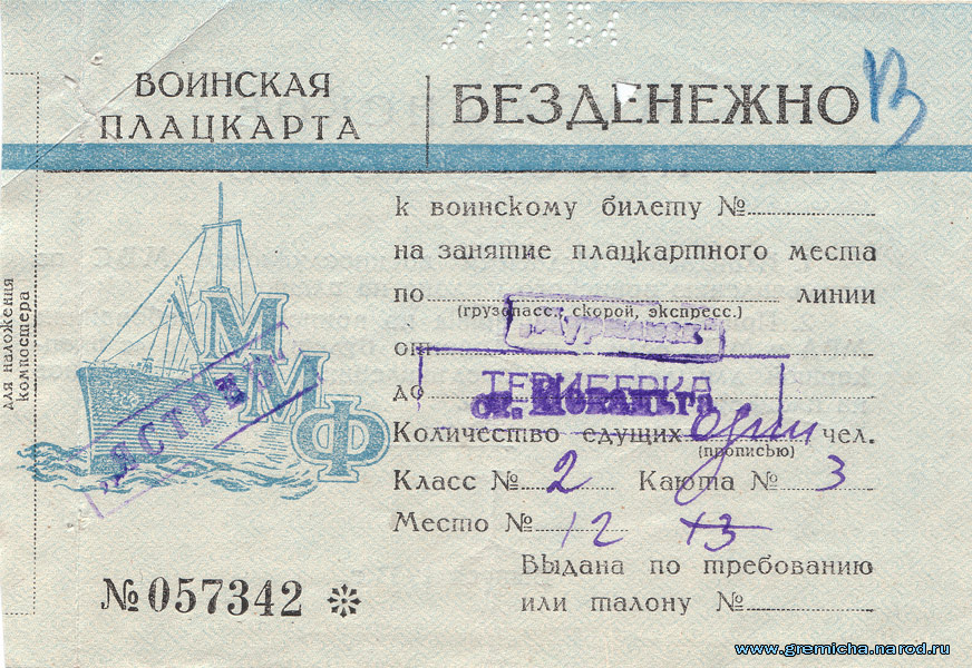 Билет на пароход "Ястреб" от 27.06.1954 года.