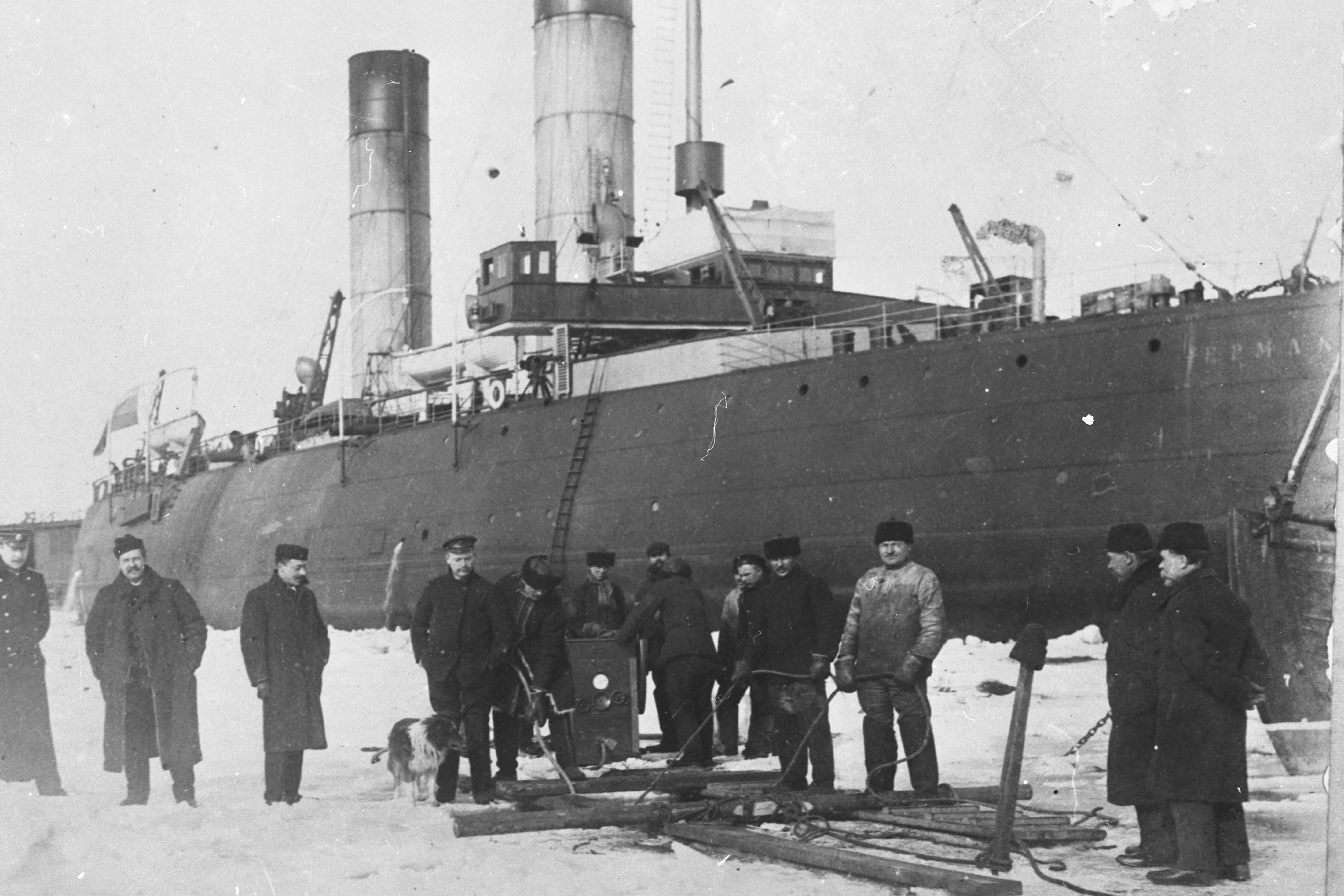 Летом 1899 года леокол “Ермак” под командованием вице-адмирала С.О. Макарова совершил поход в Арктику к острову Шпицберген для ледовых испытаний.