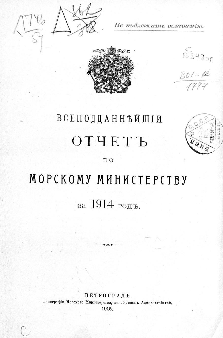 Всеподданейший отчет по Морскому министерству за 1914 г.