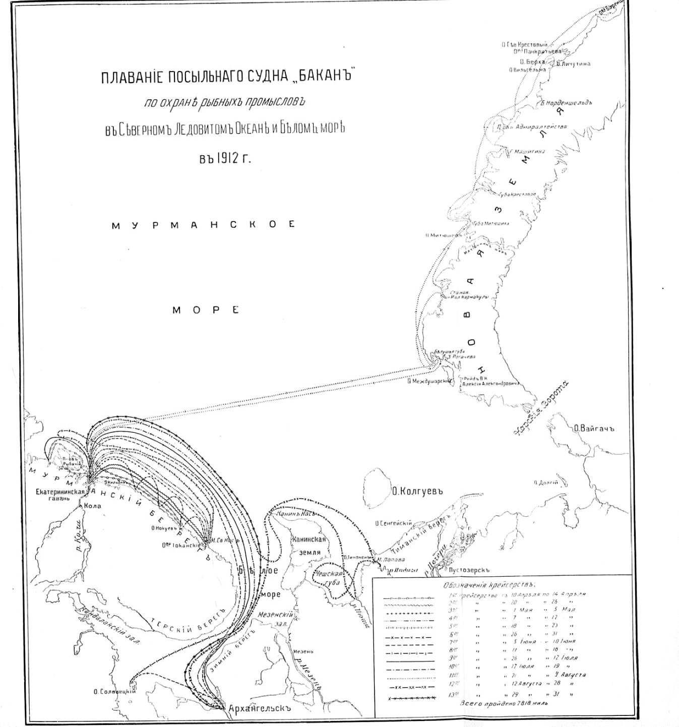 8 марта посыльное судно «Баканъ» начало кампанію и того же числа вышло изъ Порта ИМПЕРАТОРА АЛЕКСАНДРА III въ Сѣверный Ледовитый океанъ, для несенія тамъ службы по охранѣ нашихъ промысловъ.