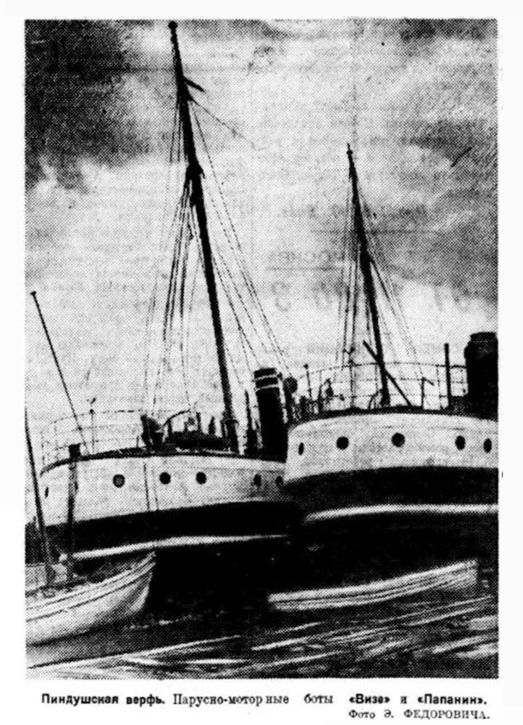 Сперва «лихтеры» и «берлины», потом «Кавасаки», парусно-моторные боты, а теперь еще маленькие озерные трамваи. Пиндушской судоверфи принадлежит большая и завидная роль во всей стройной и замечательной сталинской системе реконструкции Севера. Замечательный коллектив наркомвнудельцев выполнит эту работу так же четко, как и все, что ему поручила партия.