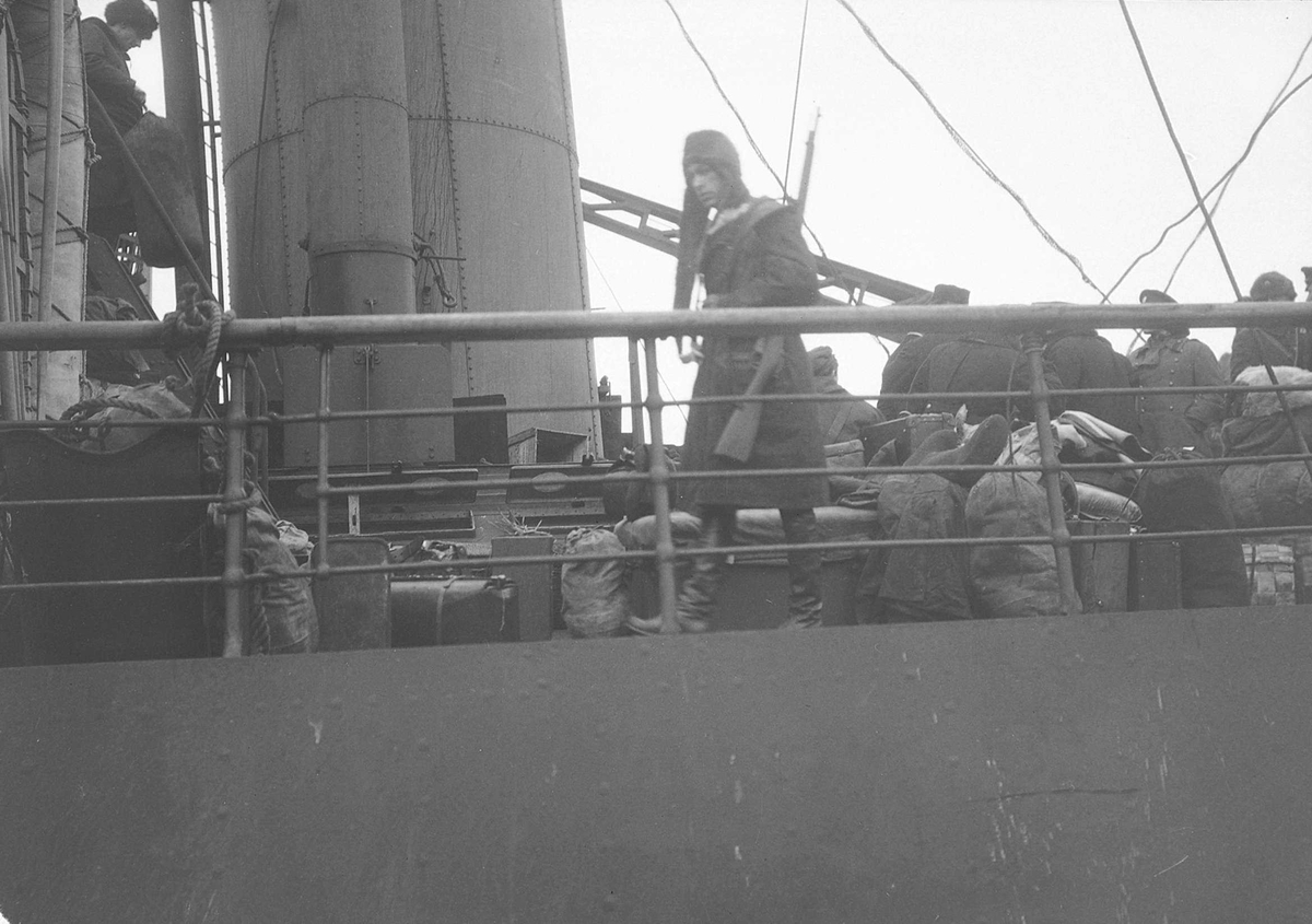 Из статьи Голдина, Тетеревлевой и Цветнова: «Генерал Е.К. Миллер в телеграмме министру иностранных дел С.Д. Сазонову в Париж 25 февраля указывал, что с ним отбыло из Архангельска около 800 пассажиров, а в письме тому же адресату от 3 марта он сообщал, что с ним в Норвегии находится 320 сухопутных и морских офицеров, около 50 солдат, 40 матросов, 66 военных и гражданских чиновников, 7 врачей, а кроме того, 160 женщин и детей (из них 29 детей в возрасте до 5 лет)».